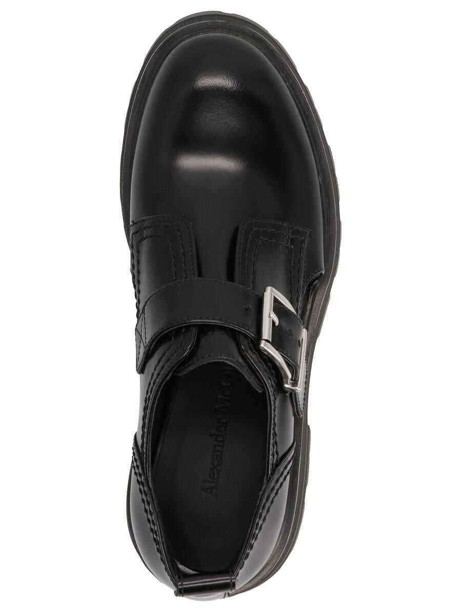 Wander' black leather loafers featuring silver finish metal eyelets, oversize rubber notched sole, round toe and a leather insole with logo