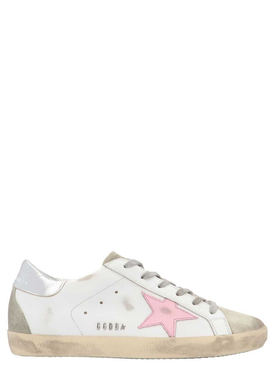 Superstar' leather lace-up sneakers with star and heel tab, metal logo detail, with low lace-up style and a rubber sole