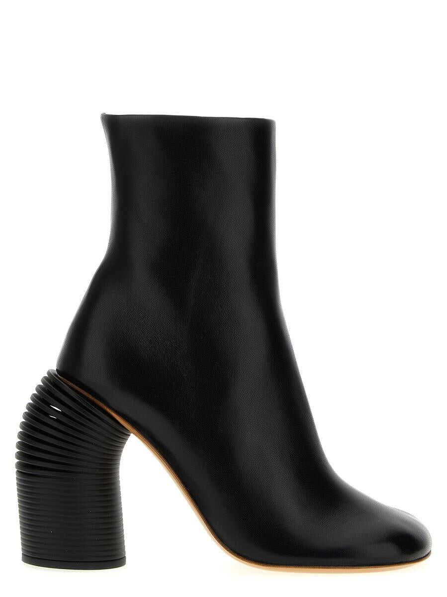 Tonal spring' leather ankle boots with curved and zipped heel and a zip closure