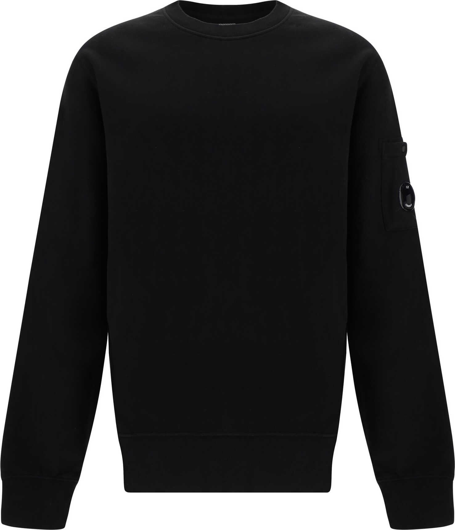 Cotton Sweatshirt by C.P.Company, ribbed crew neck, small pocket with iconic brand logo applique on sleeve and snap button, ribbed cuffs, ribbed hem, monochrome design, regular fit.