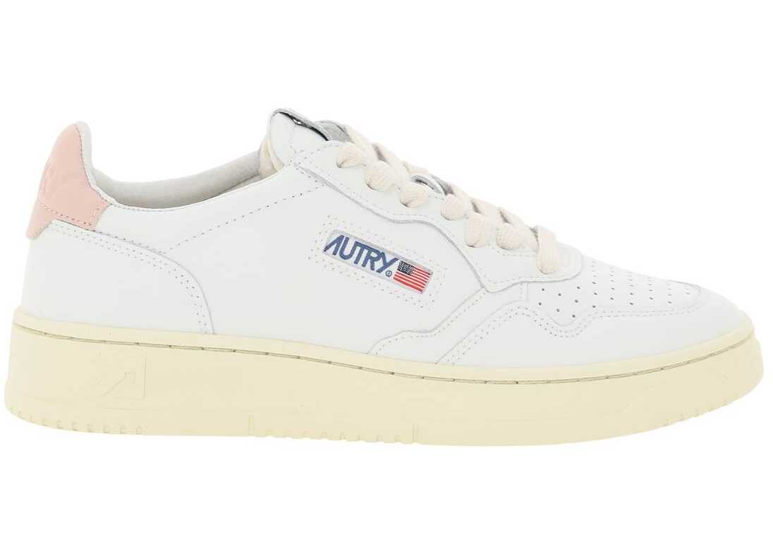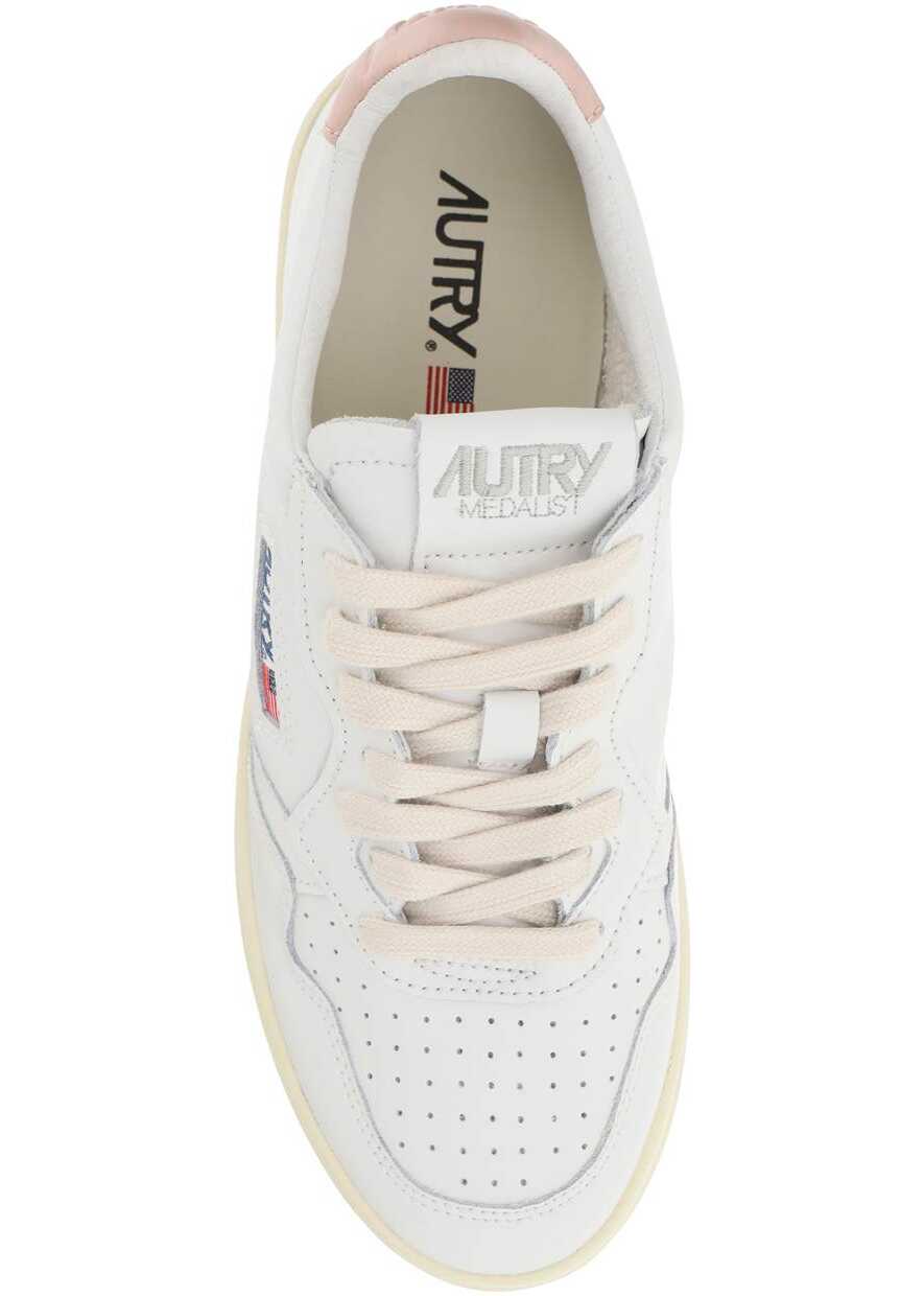 AUTRY Medalist Low sneakers crafted in leather with perforated toe, contrasting heel tab with debossed logo, side logoed fabric inlay and logo embroidery on the tongue. Lace-up closure with cotton laces, leather and terry lining, removable leather insole, rubber sole with side embossed logo.