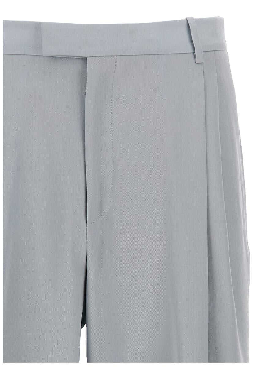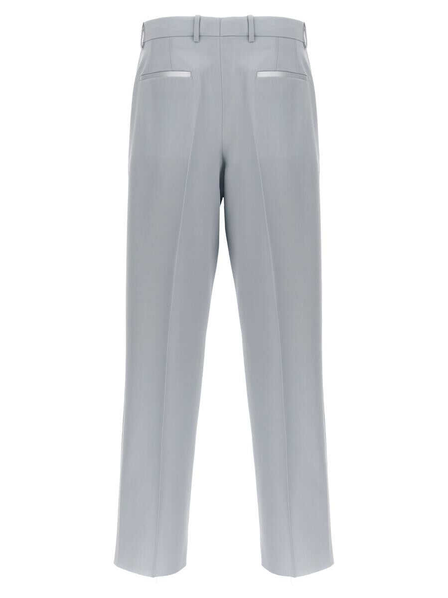 OW Emb Drywo Smoking' wool pants with side satin bands, hook and button zip closure, pockets, pin tucks and central crease