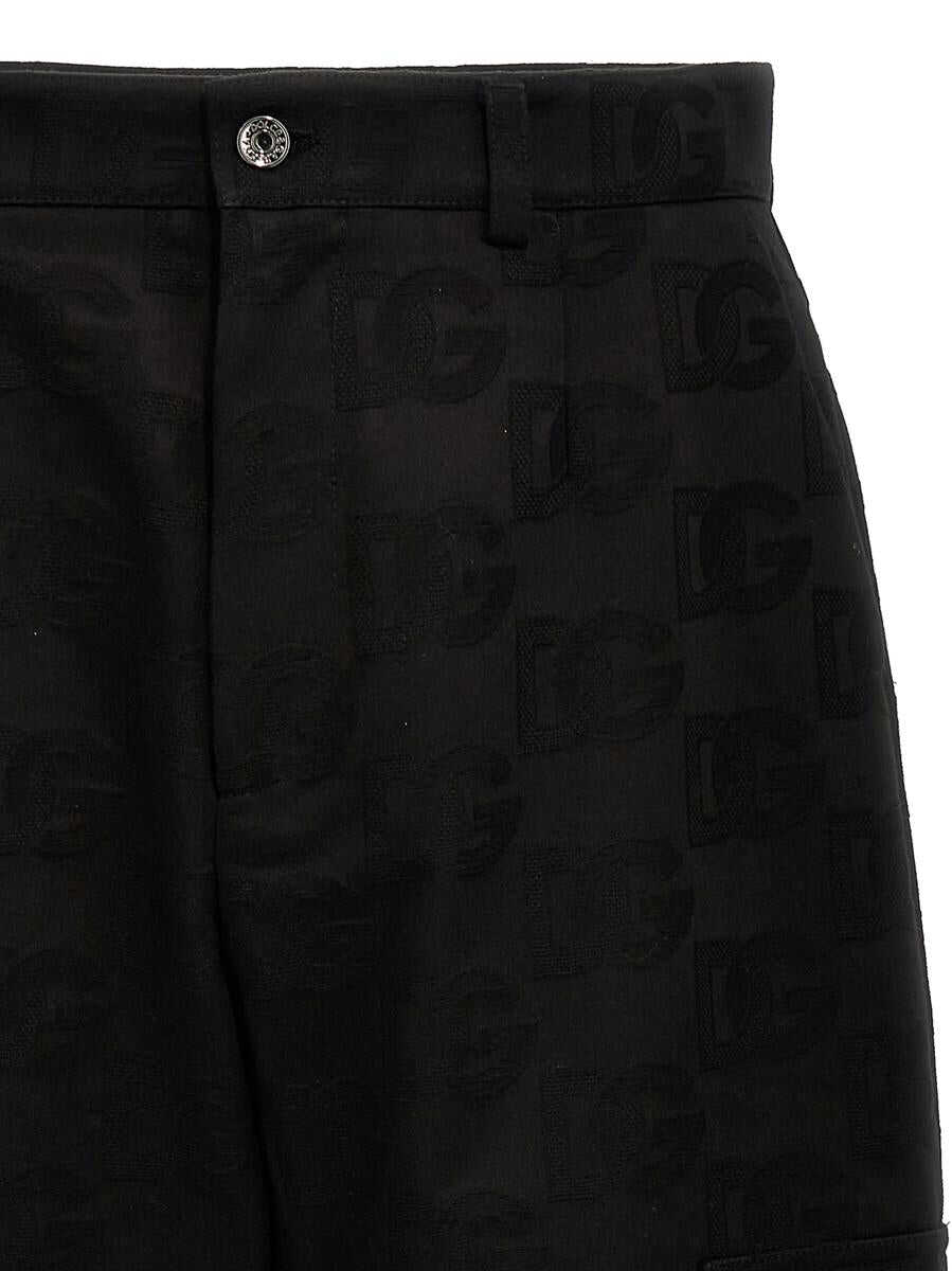 Cargo cotton pants with DG jacquard logo, wide leg, zip and button closure