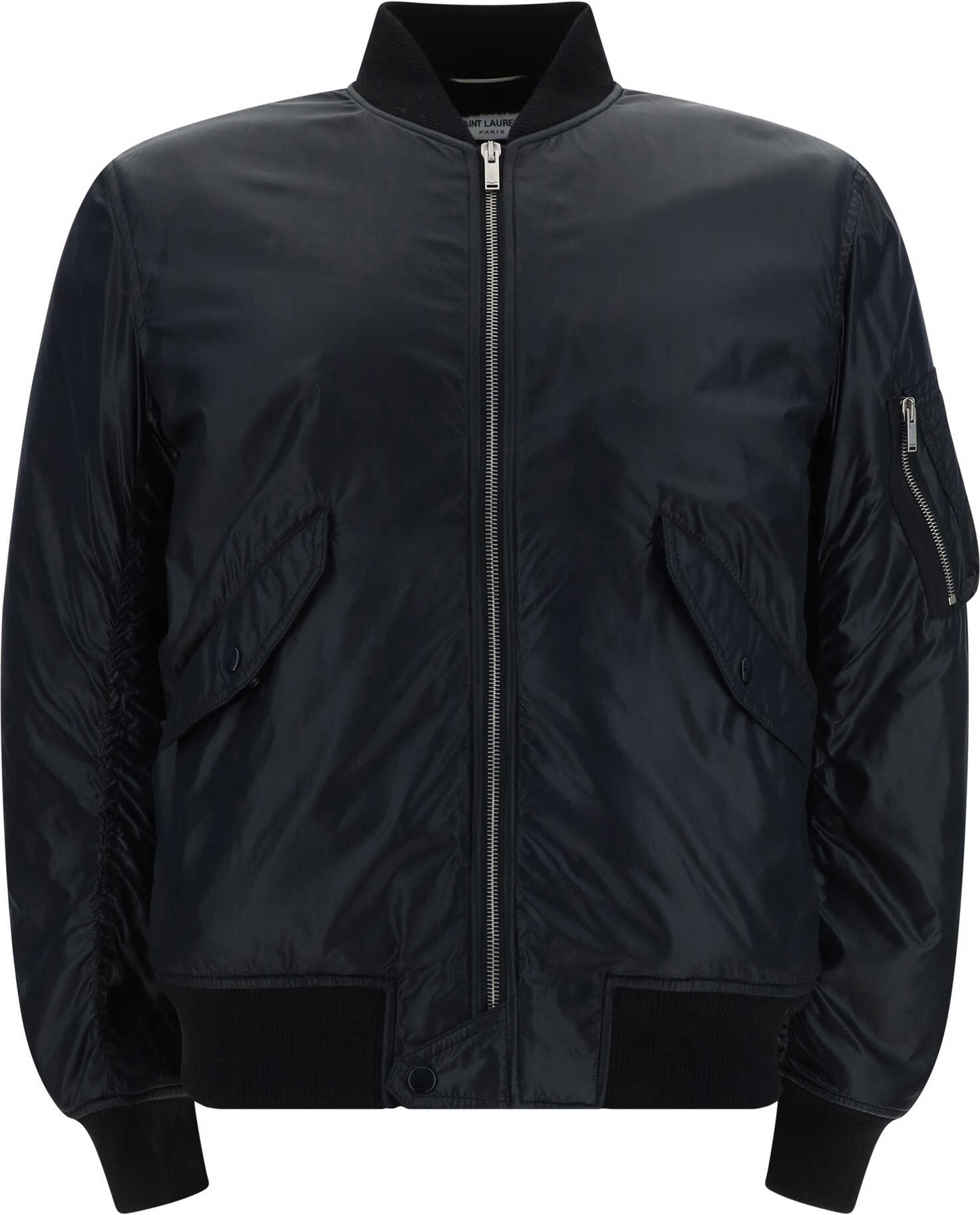 Army Doublure Bomber Jacket by Saint Laurent, double-slider front zipper closure, high ribbed crew neck, elasticated cuffs, elasticated ribbed hem, soft shearling lining, two side welt pockets, regular fit.