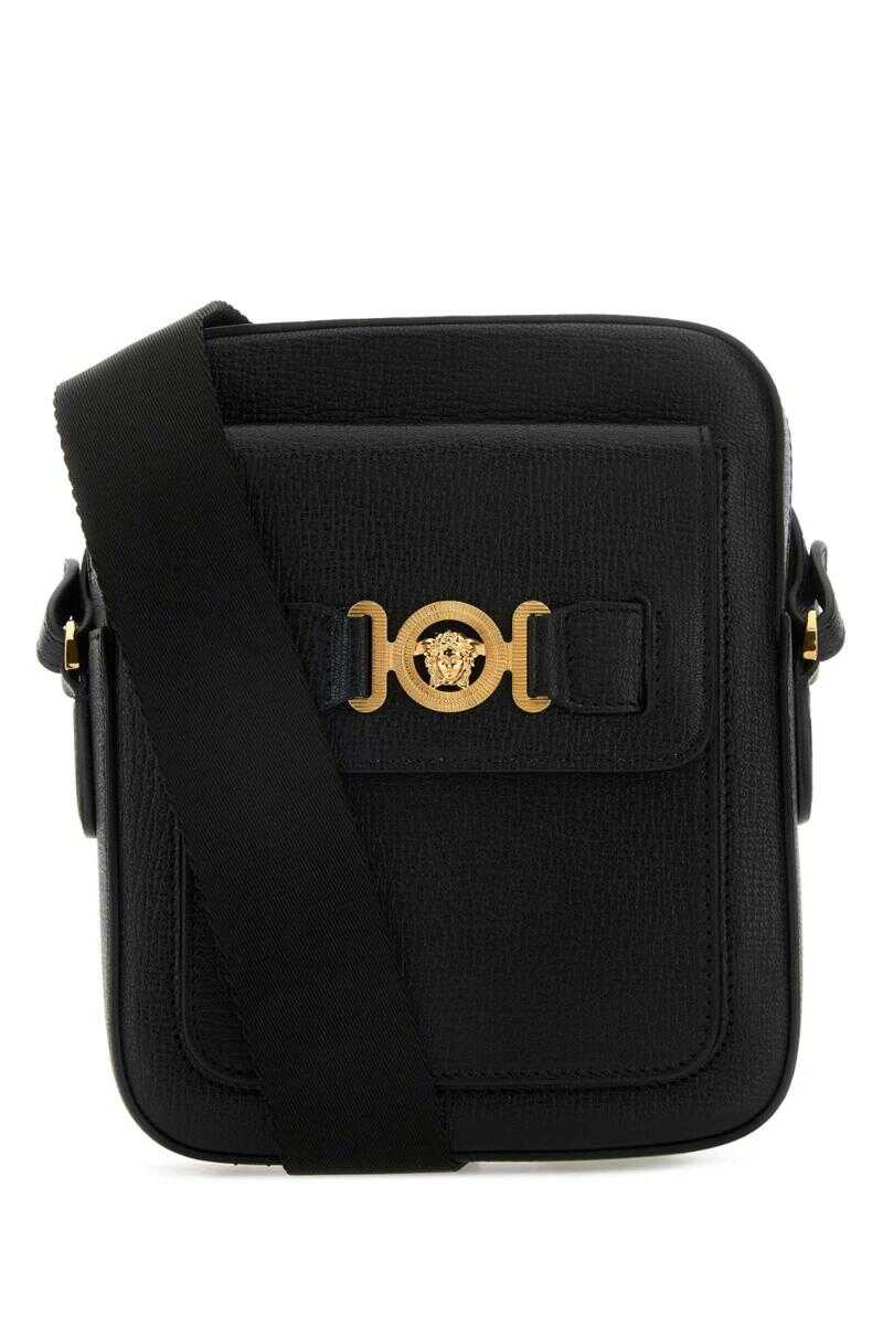 Black leather Medusa Biggie crossbody bag Width: 17 cm Height: 21 cm Depth: 9 cm Min shoulder strap length: 50 cm Max shoulder strap length: 55 cm