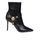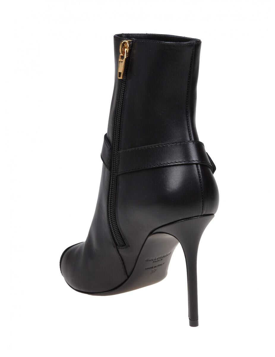 Calf leather ankle boot Black colour Pointed model Decorative leather straps with "lion motif" metal details Thin heel covered in leather Leather outer sole Inner sole in contrasting leather embossed with grid pattern Internal leather lining Heel height 9.5 cm Main material: 100% calf leather