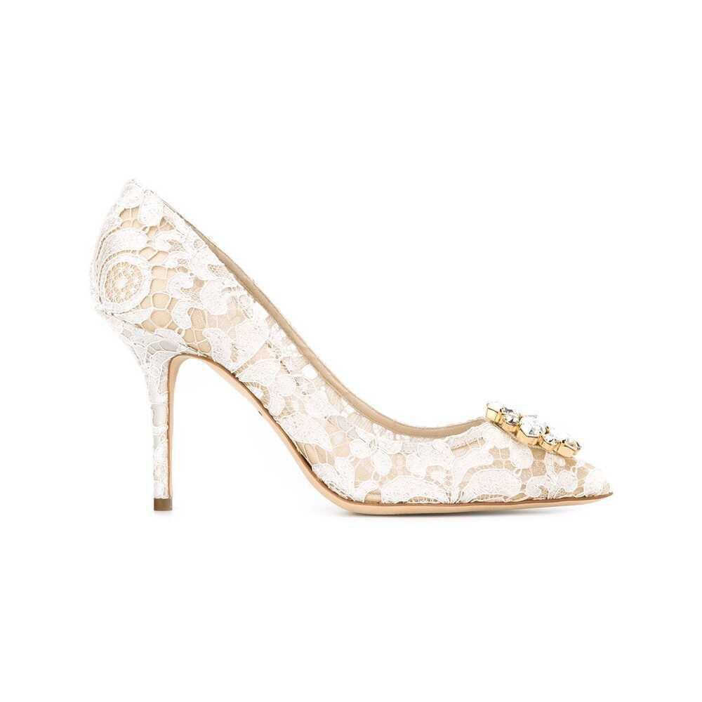 Dolce and gabbana live and breathe italian spirit - reflected within their collection of sleek ready-to-wear and accessories that redefine sicilian seductiveness. these off-white belluci taormina lace pumps feature a pointed toe, a floral lace pattern, crystal embellishments, a brand embossed insole and a high stiletto heel.