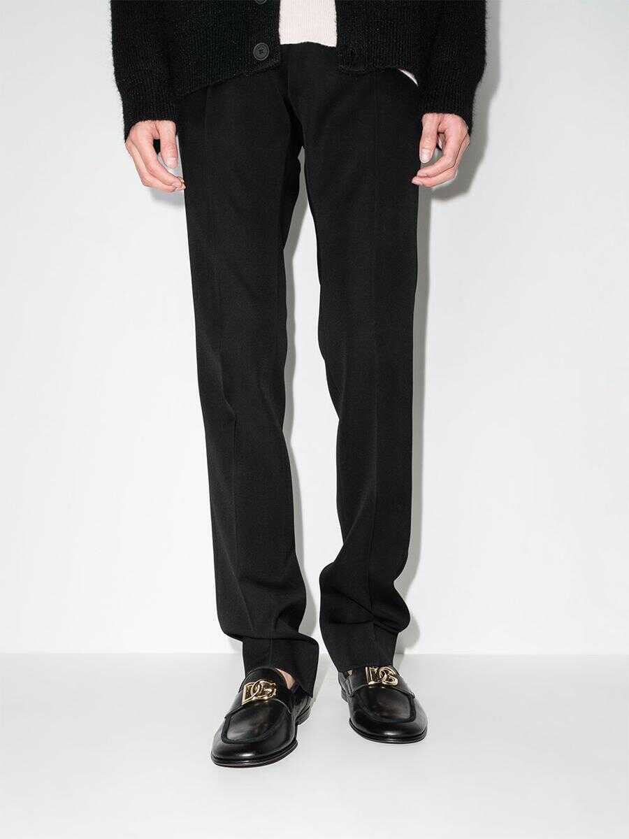 black leather gold-tone logo plaque branded insole almond toe slip-on style flat leather sole