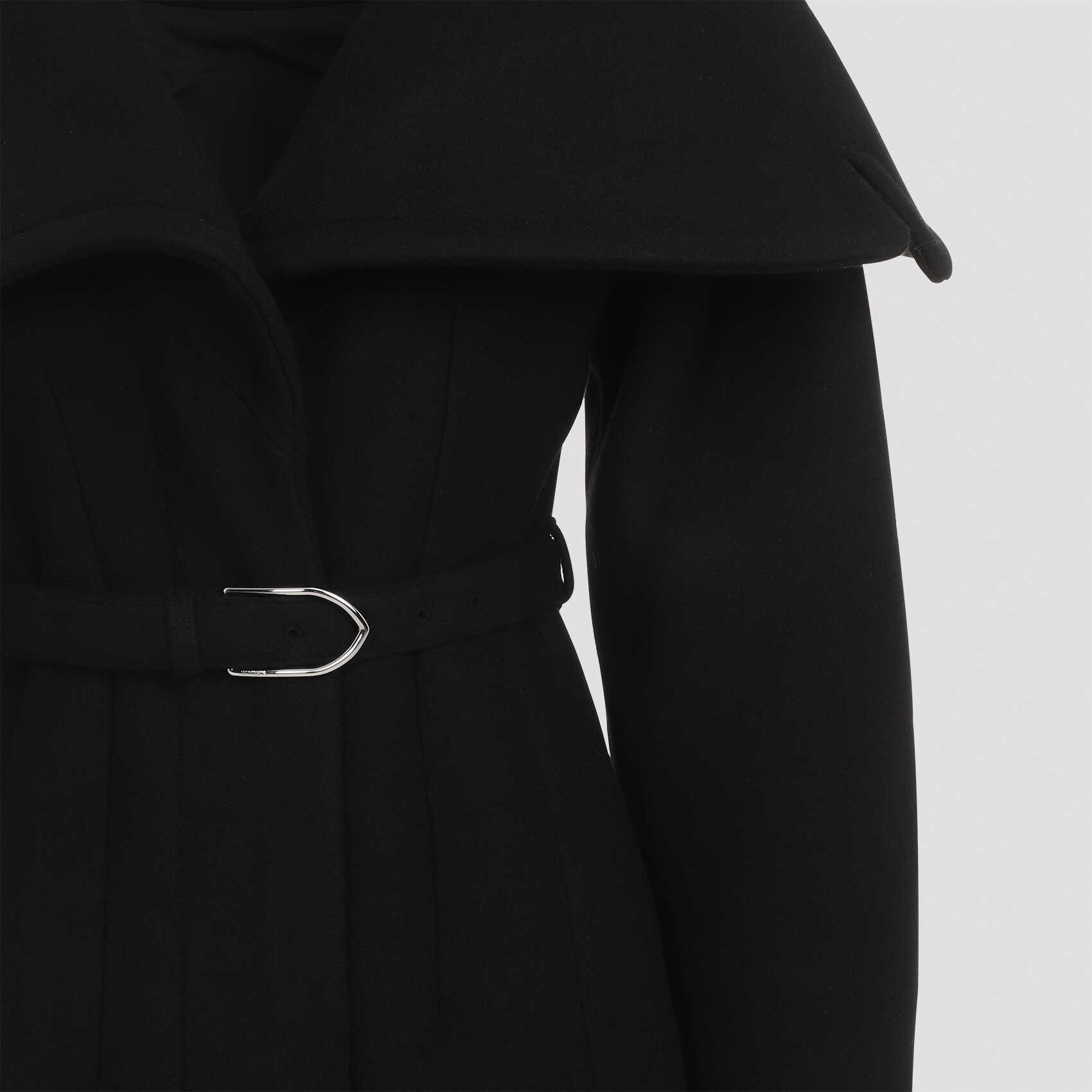 Stay warm and stylish in this elegant black coat by JACQUEMUS. Made from a luxurious blend of cotton and virgin wool, this coat is perfect for the modern woman. With its sleek design and high-quality material, you'll turn heads wherever you go. Upgrade your wardrobe with this must-have piece today!