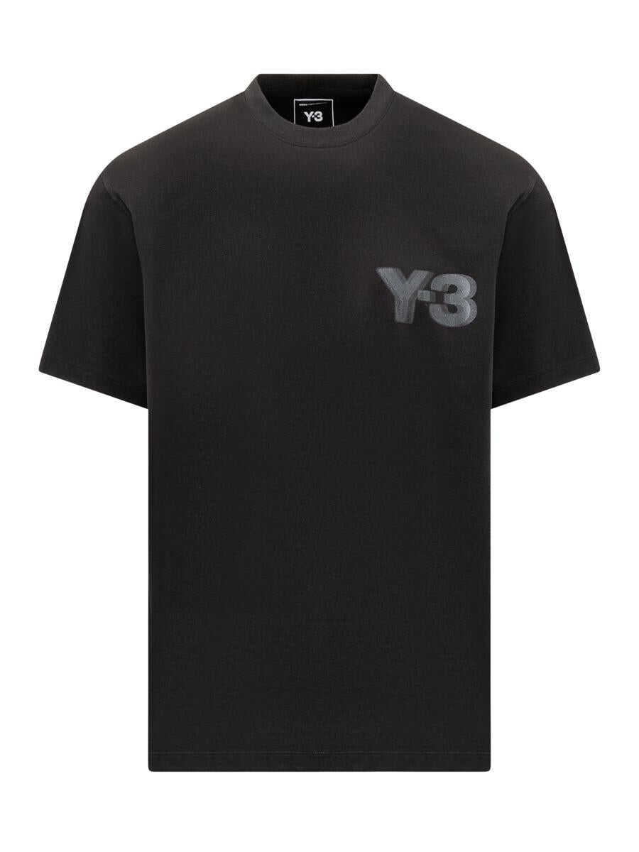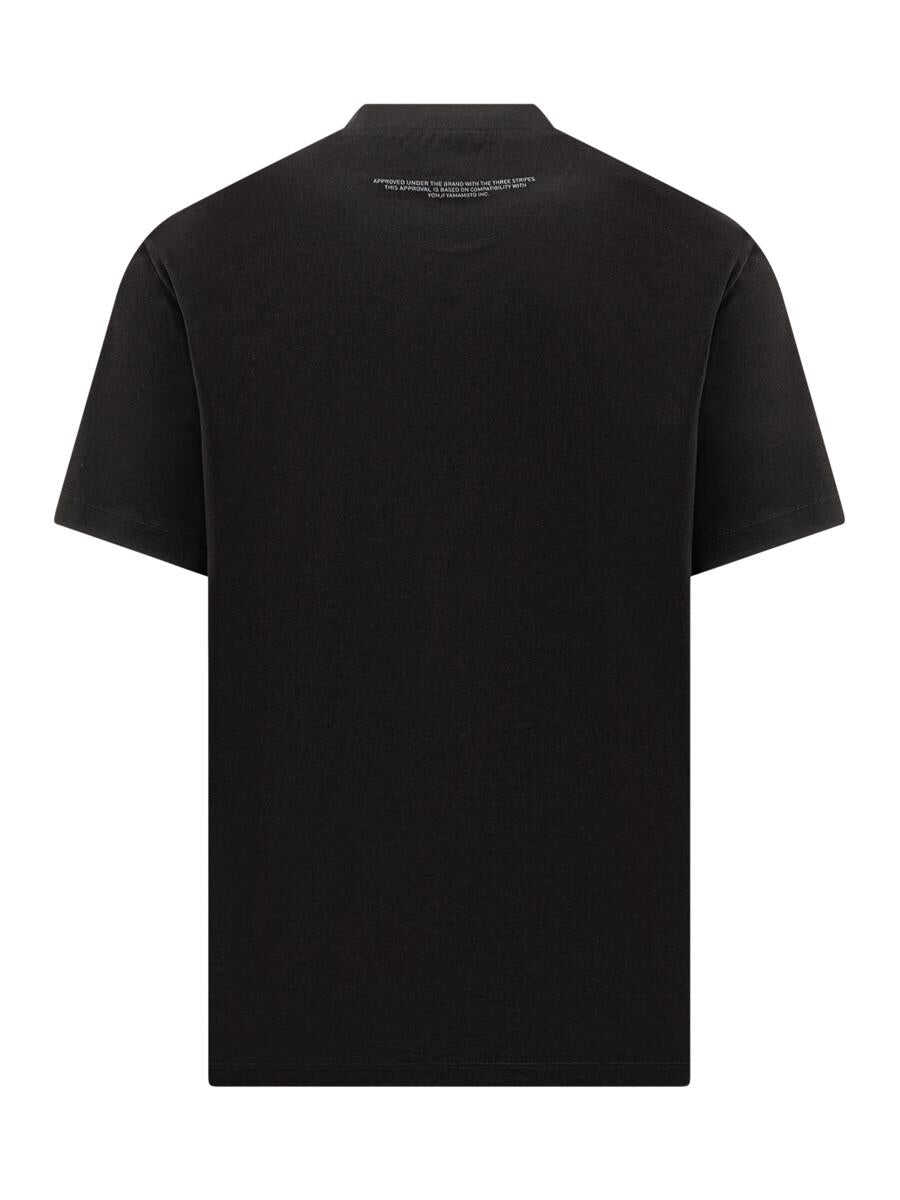 Black cotton T-shirt. Crew neck. Lettering print on the back. Logo print on front.