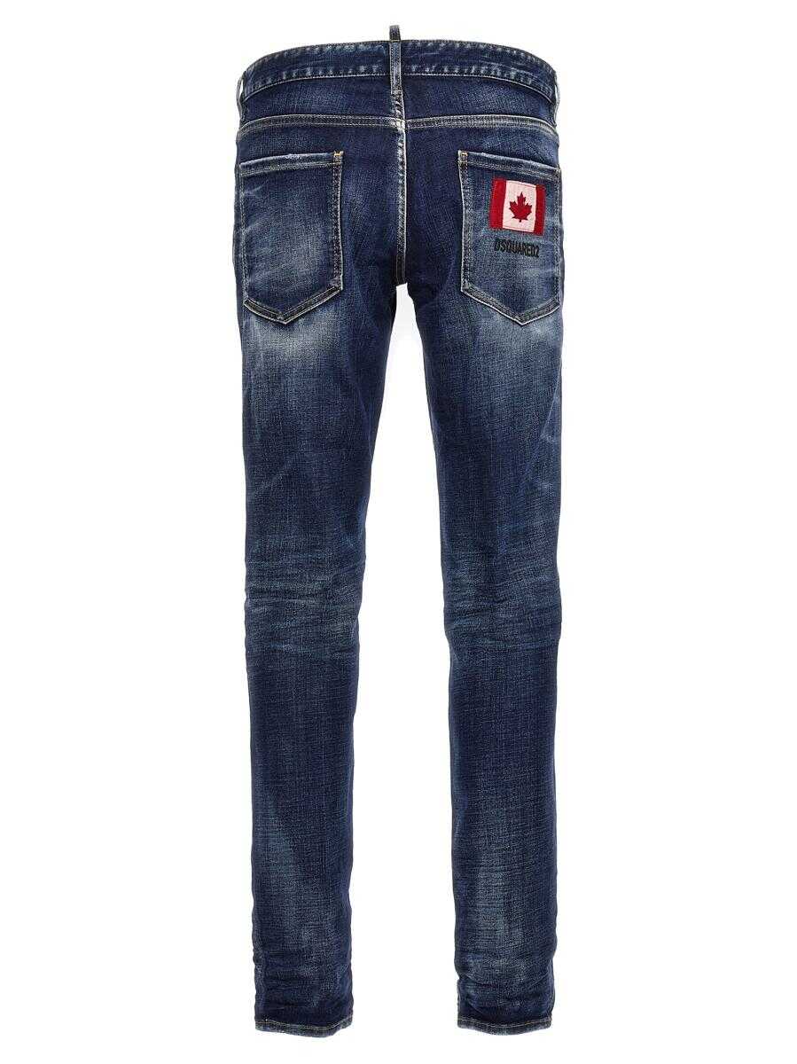 Slim' cotton denim jeans with button closure, five pockets, patch, back logo print and used-effect details