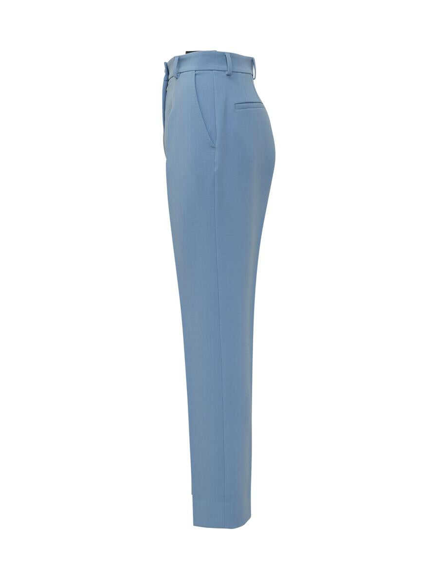 Virgin wool cigarette pants. Button and zipper closure. Belt loops. Two side pockets. Two welt pockets at back. Pattern with ironed crease.