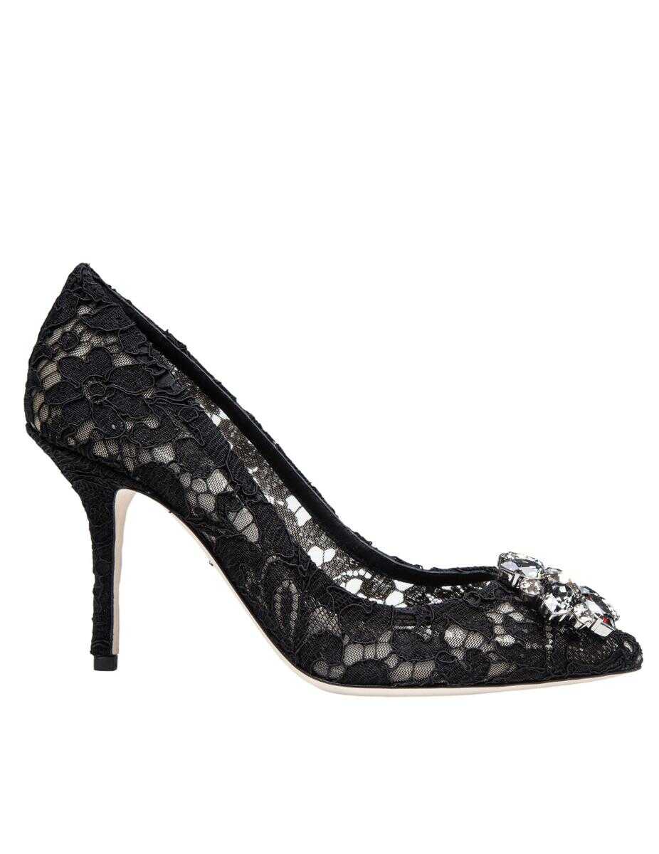 Bellucci lace pumps Black color Embellished with the iconic brooch made of colored crystals in shades with the upper Upper in mesh covered in lace Heel height 9 cm Insole in goatskin with branded label Logoed leather sole Details: