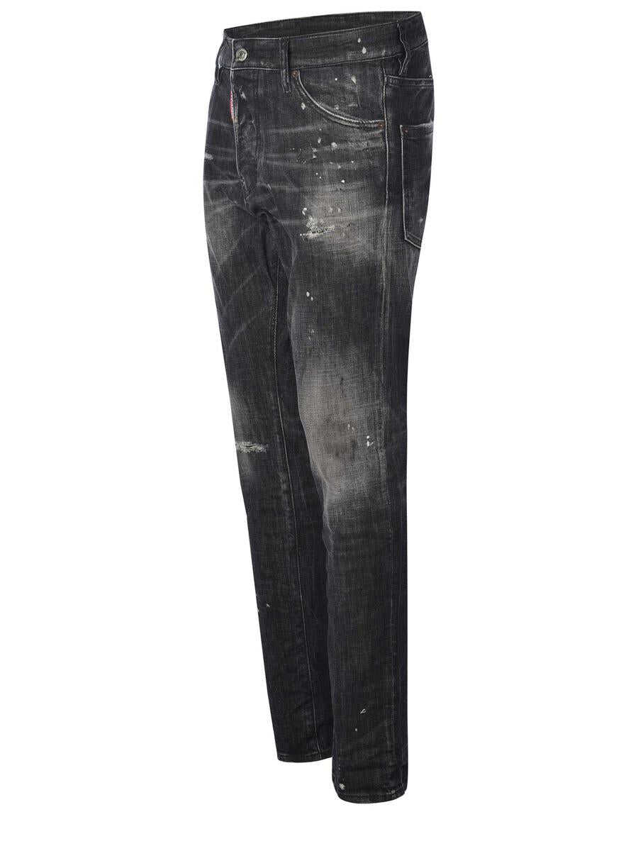 Jeans Dsquared2 "Cool Guy" made of Black denim. Stone wash effect. Micro tears and patches. Contrasting Black/White paint splashes all-over. Belt loops. Five pockets. Concealed button closure. Contrasting logo patch applied on the front. Black leather label, tone-on-tone "1964 Dsquared2" lettering applied on the back. Cool Guy fit.
