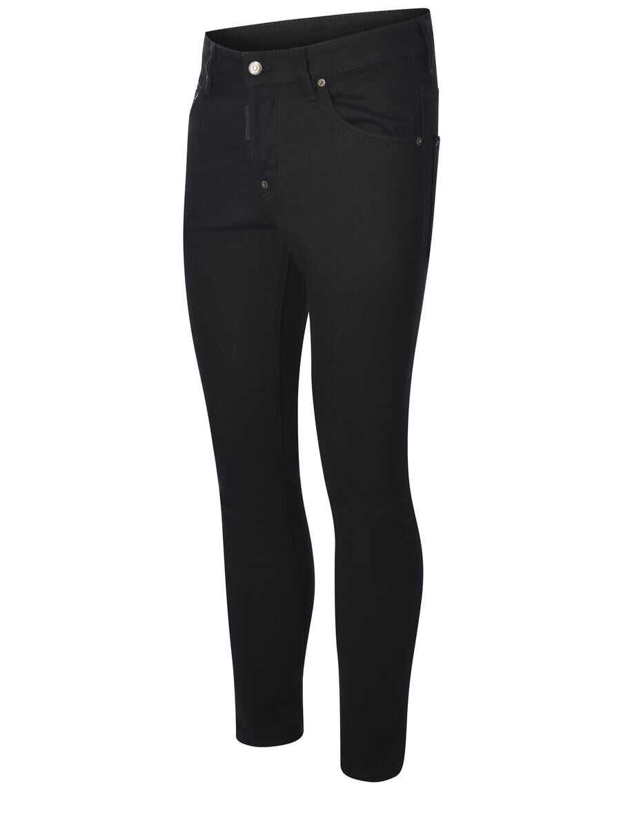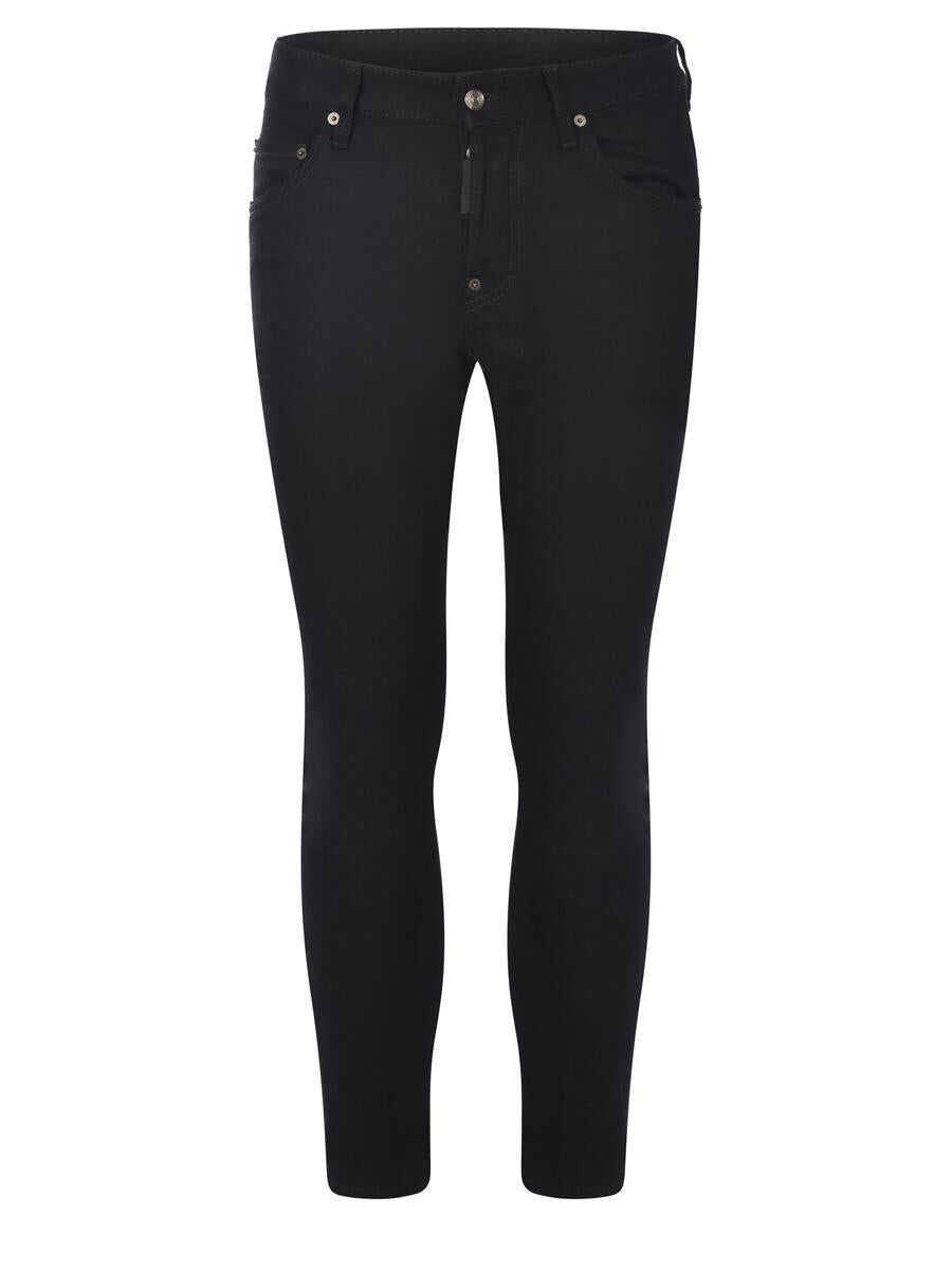 Jeans Dsquared2 "Skater" made of stretch denim in Black. Simply wash. Five pockets. Closure with hidden buttons. Tone-on-tone logo patch applied on the front. Leather label with contrasting "Black Bull" logo lettering in White. Skater fit.