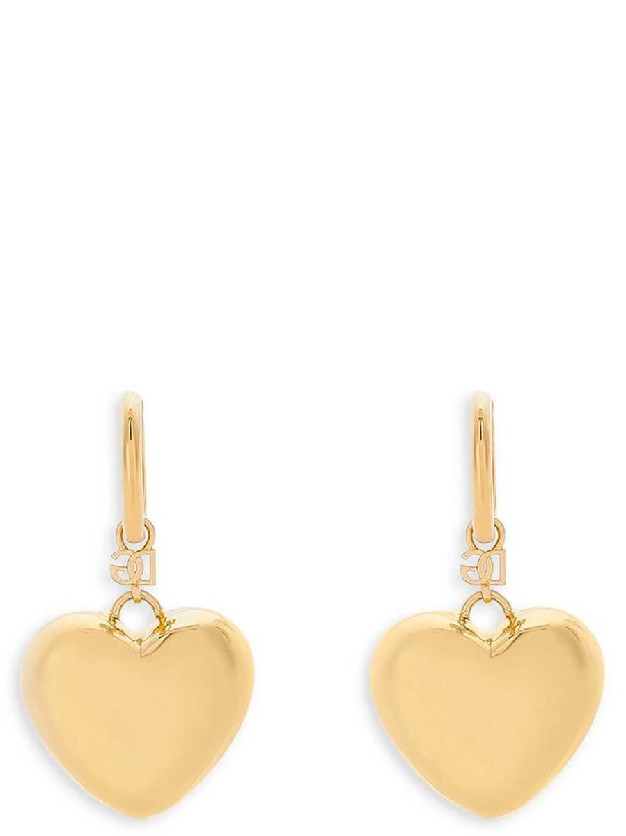 Gold-tone stainless steel heart charm embossed logo to the front hook fastening dangle design for pierced ears these earrings come as a pair.