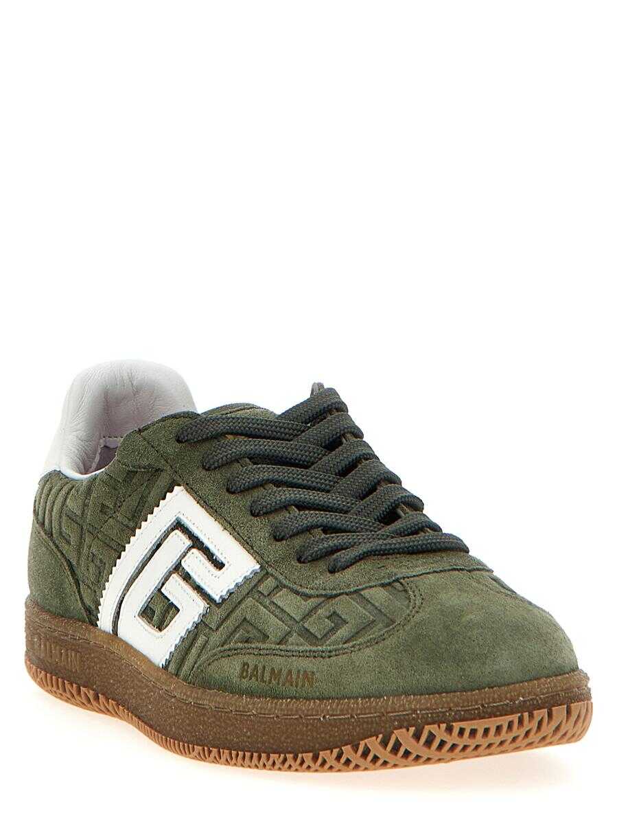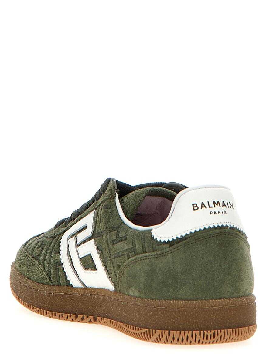 'Balmain Swan' suede sneakers with leather side logo, lace-up closure, rubber sole