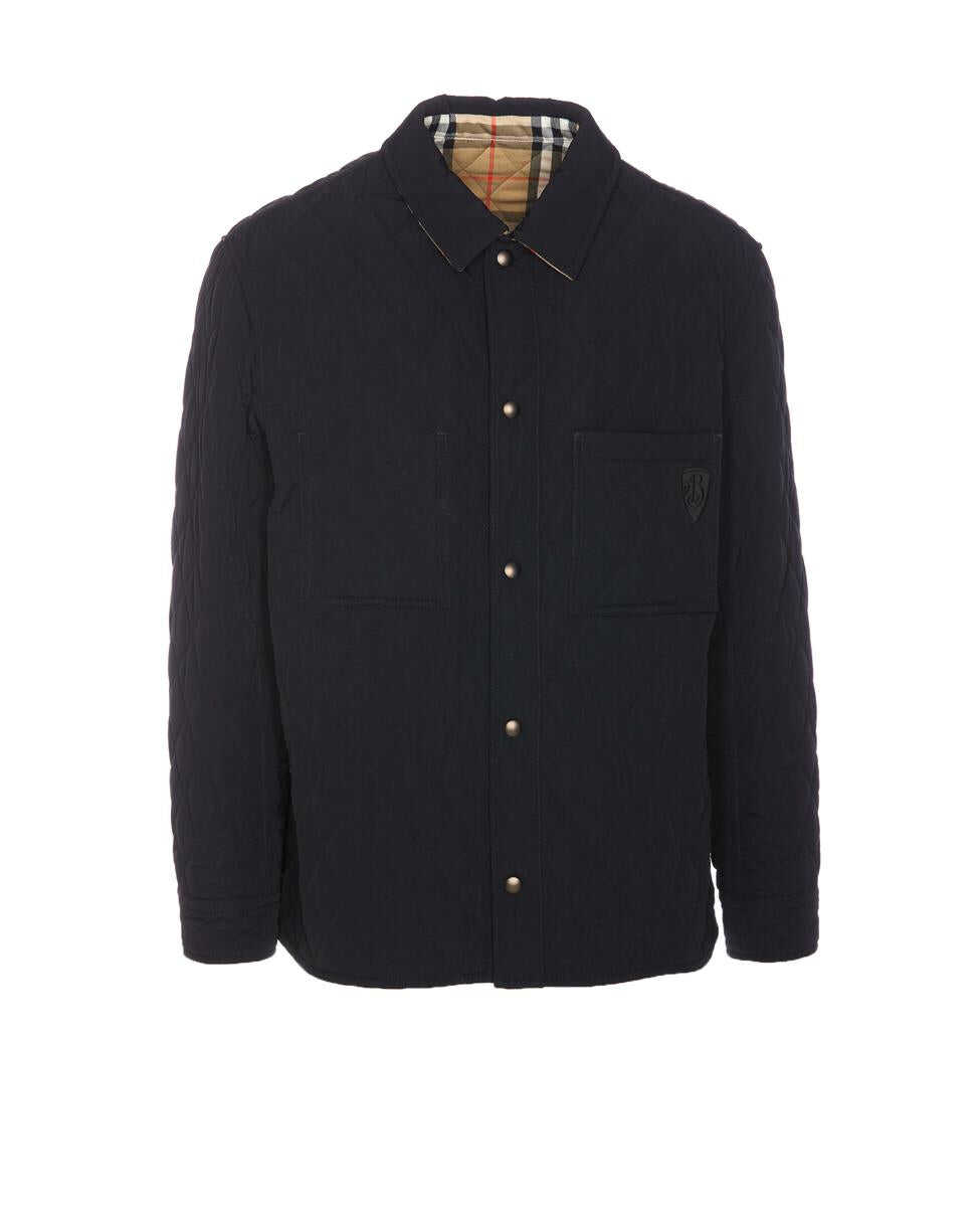 Burberry black quilted jacket with frontal buttons closure, long sleeves, frontal pocket with embroidered patch logo on the front, long sleeves, button on cuffs, one side with check motif, regular collar, US SIZE