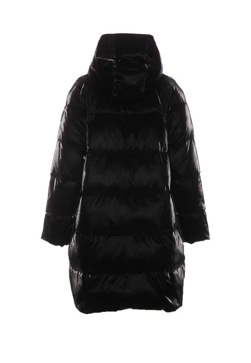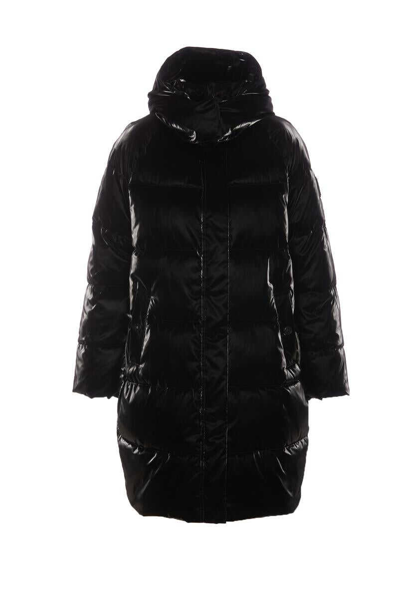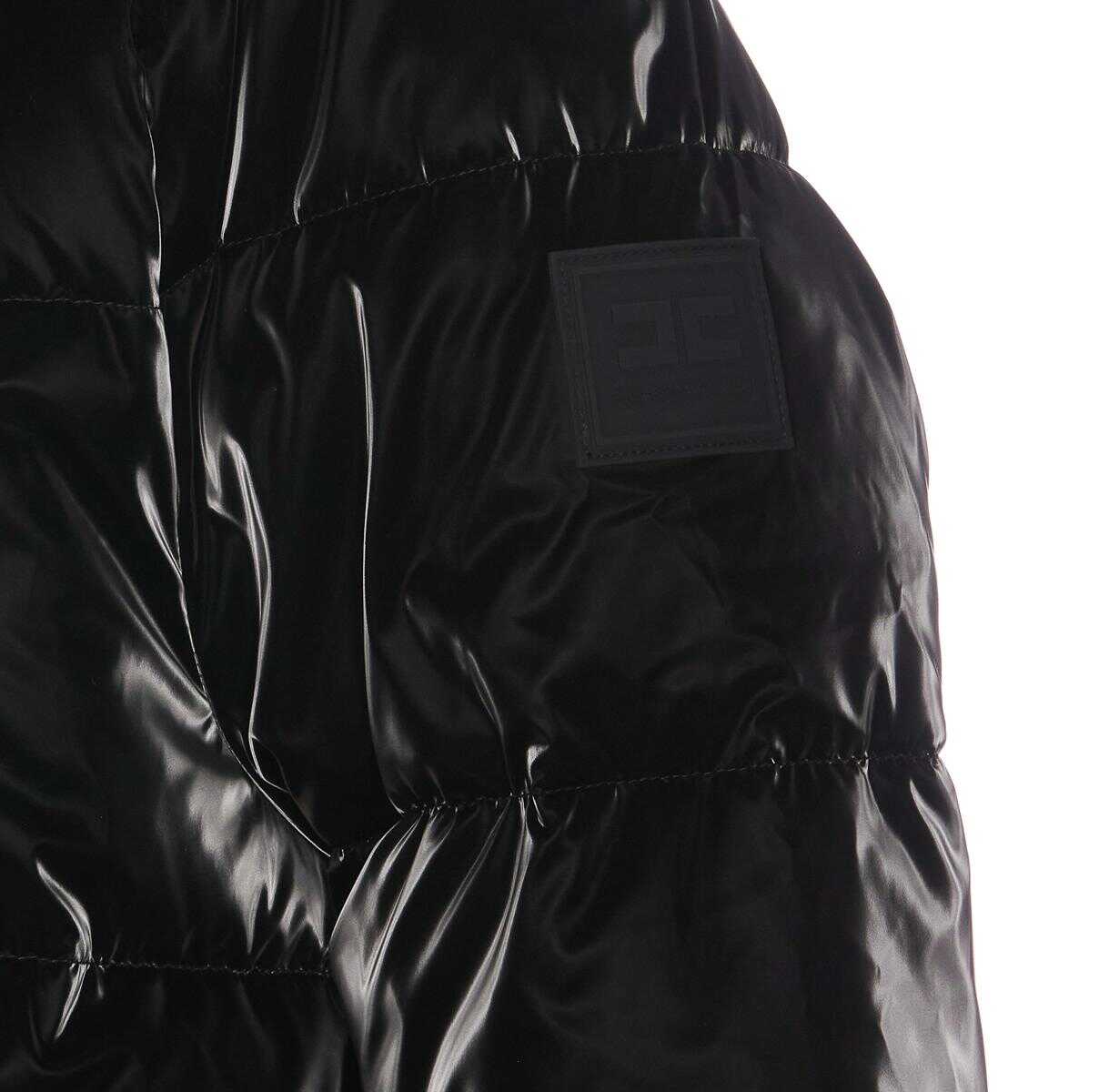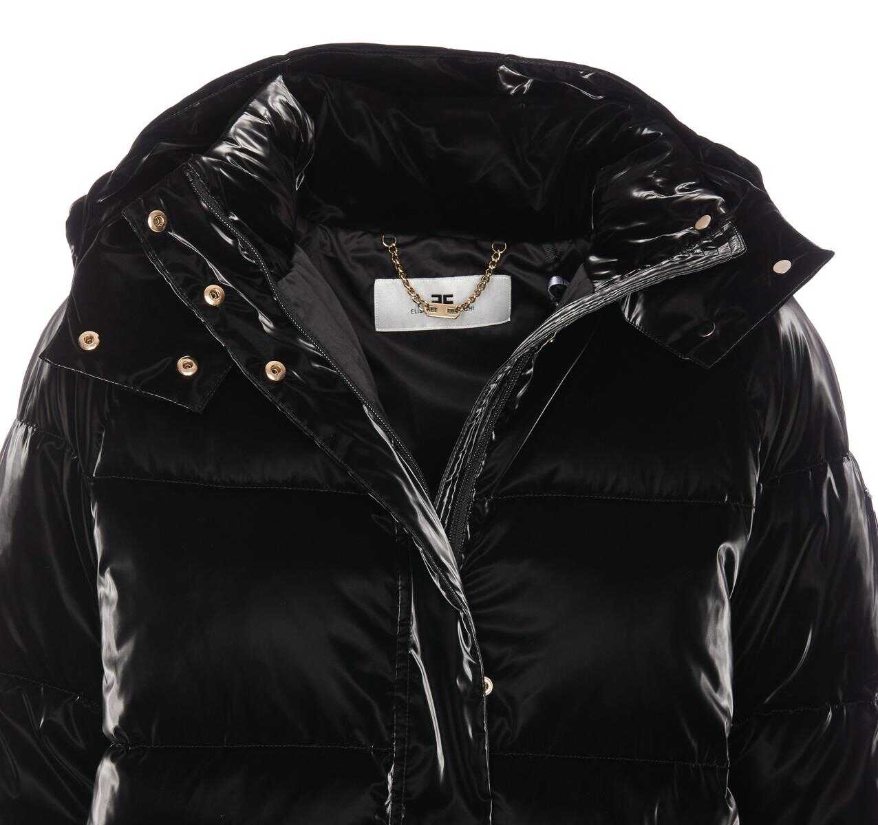 Elisabetta Franchi Black Padded Down Jacket With Frontal Zip Clsoure, Removable Hood Detail, Long Sleeves, Pockets, Padded, Lateral Patch Logo Detail, Glossy Effect, EU SIZE (IT)