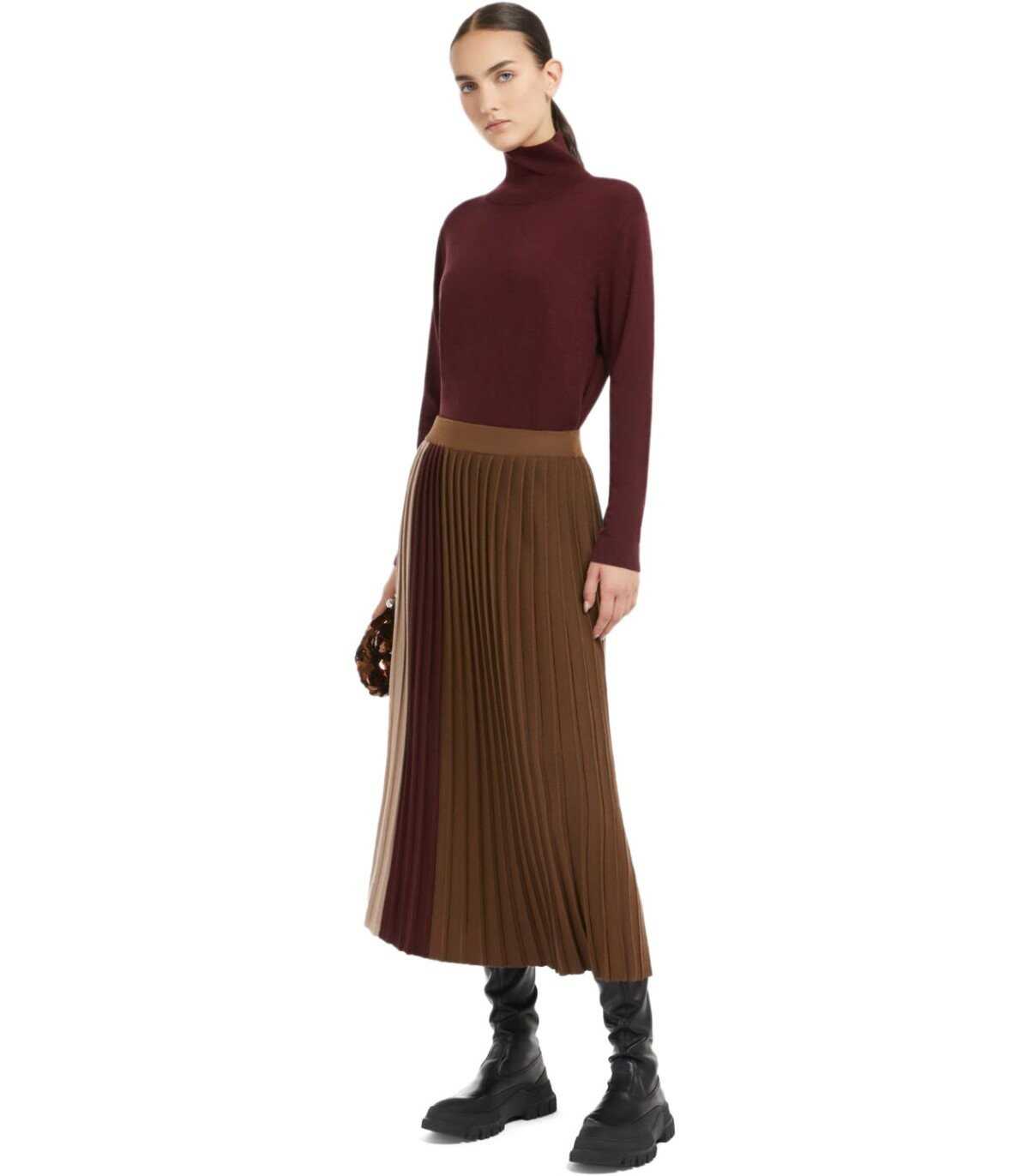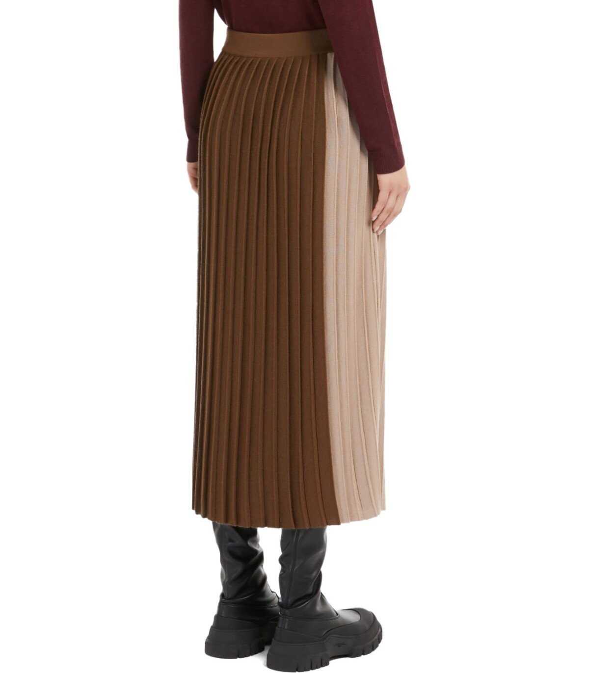 Max Mara Weekend virgin wool dress made of mixed wool in a sandy brown color. Characterized by a flared line, it features an elasticized waist finished with pleating. Relaxed fit.