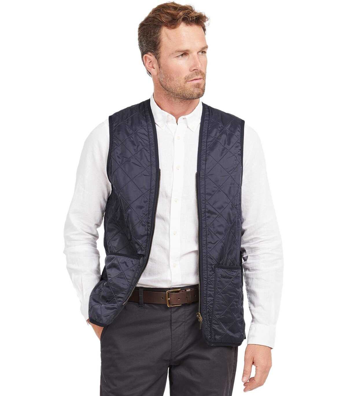 Barbour Polarquilt gilet made of technical fabric, in navy blue. Characterized by a front zip closure, it can be combined with a functional jacket. Equipped with an inner zip layer, it is finished with diamond quilting and a fleece lining. Patch pockets adorned with contrasting Barbour embroidery and a secure inner pocket. Regular fit.