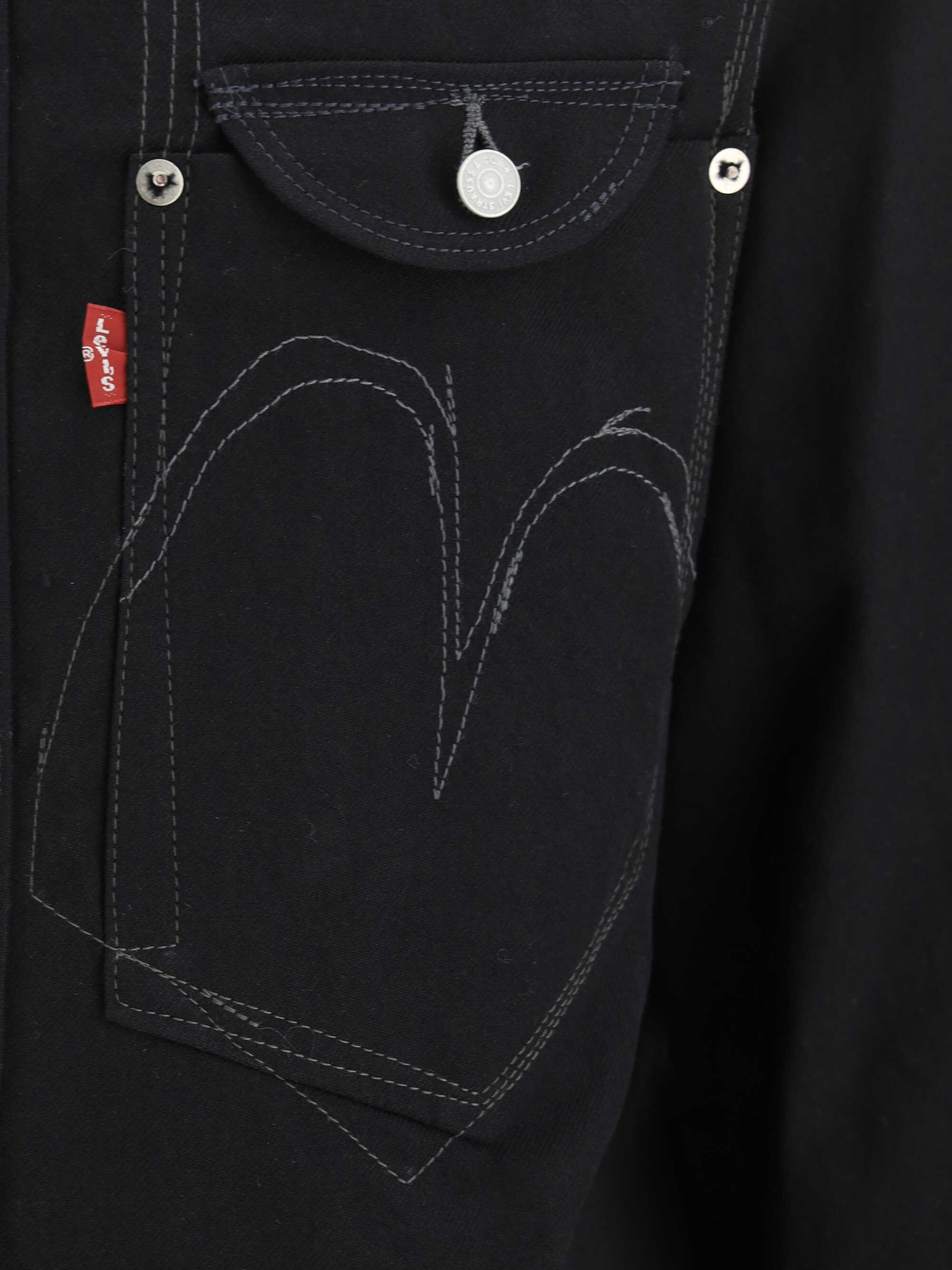 Wool Shirt by Junya Watanabe x Levis, classic collar, front button closure, one welt pocket with flap applique on front, adjustable button cuffs, monochrome pattern, regular fit.
