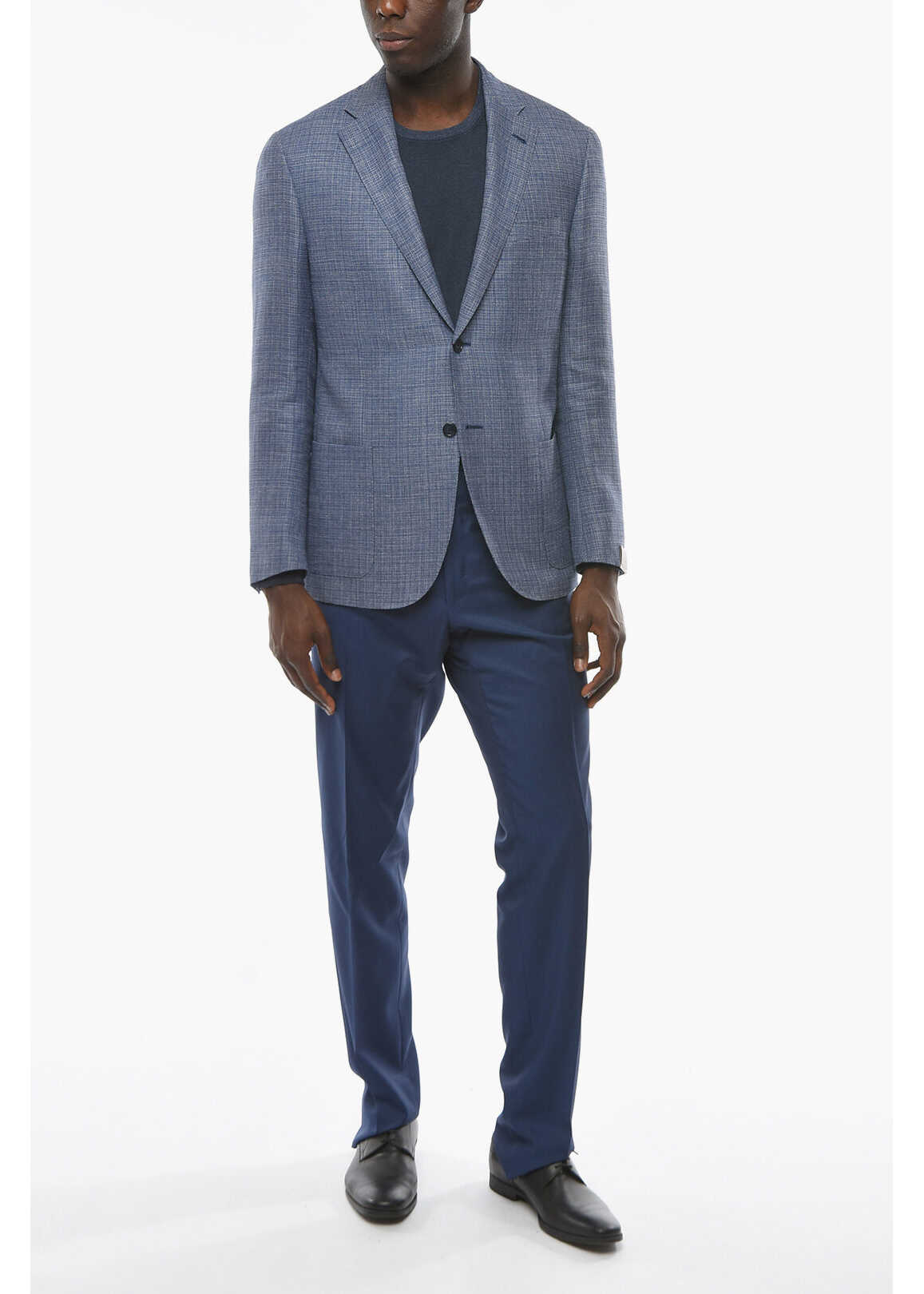 DROP 8R Single-breasted jacket Side slit Inner pocket Sleeves with buttons Breast pocket 2 pockets Long sleeves Buttons Blue Casual Half-lined Patch pocket Made in Italy Spring-Summer Materials: 50%WV 45%LI 5%SE Product code: P519685 Model is wearing size 54 Model measurements Height: 197 cm Chest: 106 cm Waist: 81 cm Hips: 102 cm