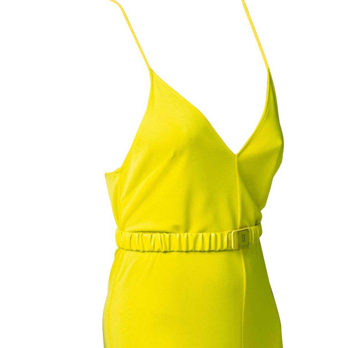Elisabetta Franchi jumpsuit in cedar-colored jersey crepe, featuring a wide neckline and thin, adjustable straps. Wide-leg pants with pockets on the hips, elastic belt with logo buckle. Soft fit.COLOR YellowMATERIALS 100% VISMADE IN Italy
