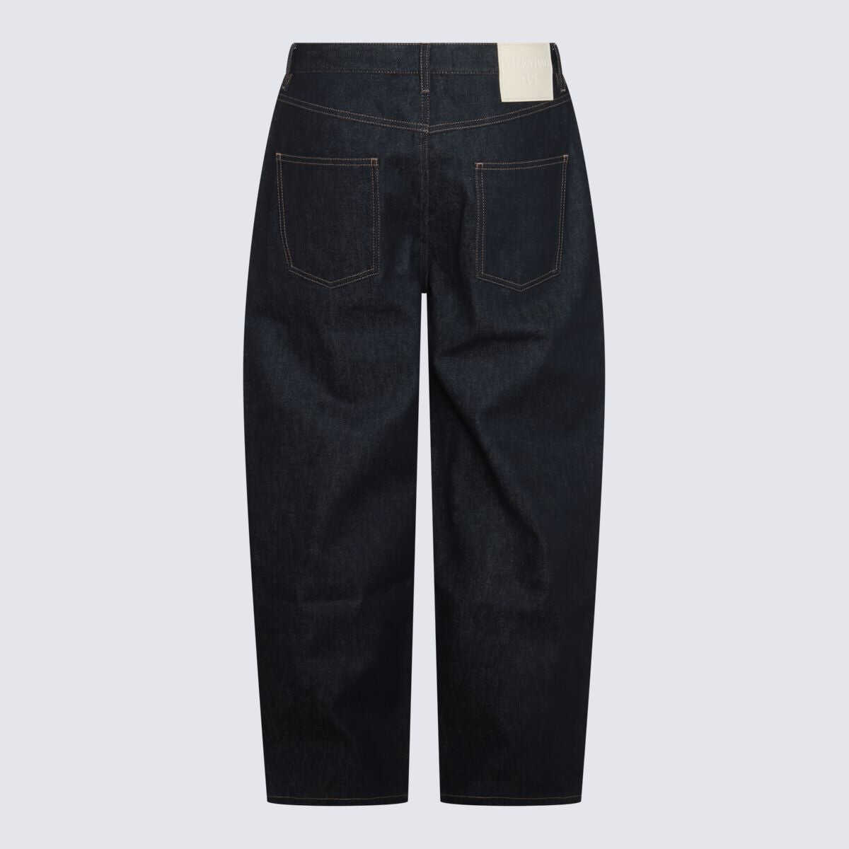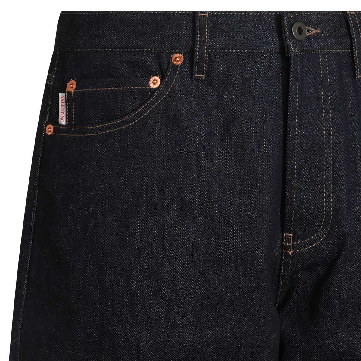 Dark blue cotton denim jeans from Valentino featuring frontal zip and button fastening, belt loops and balloon shape.