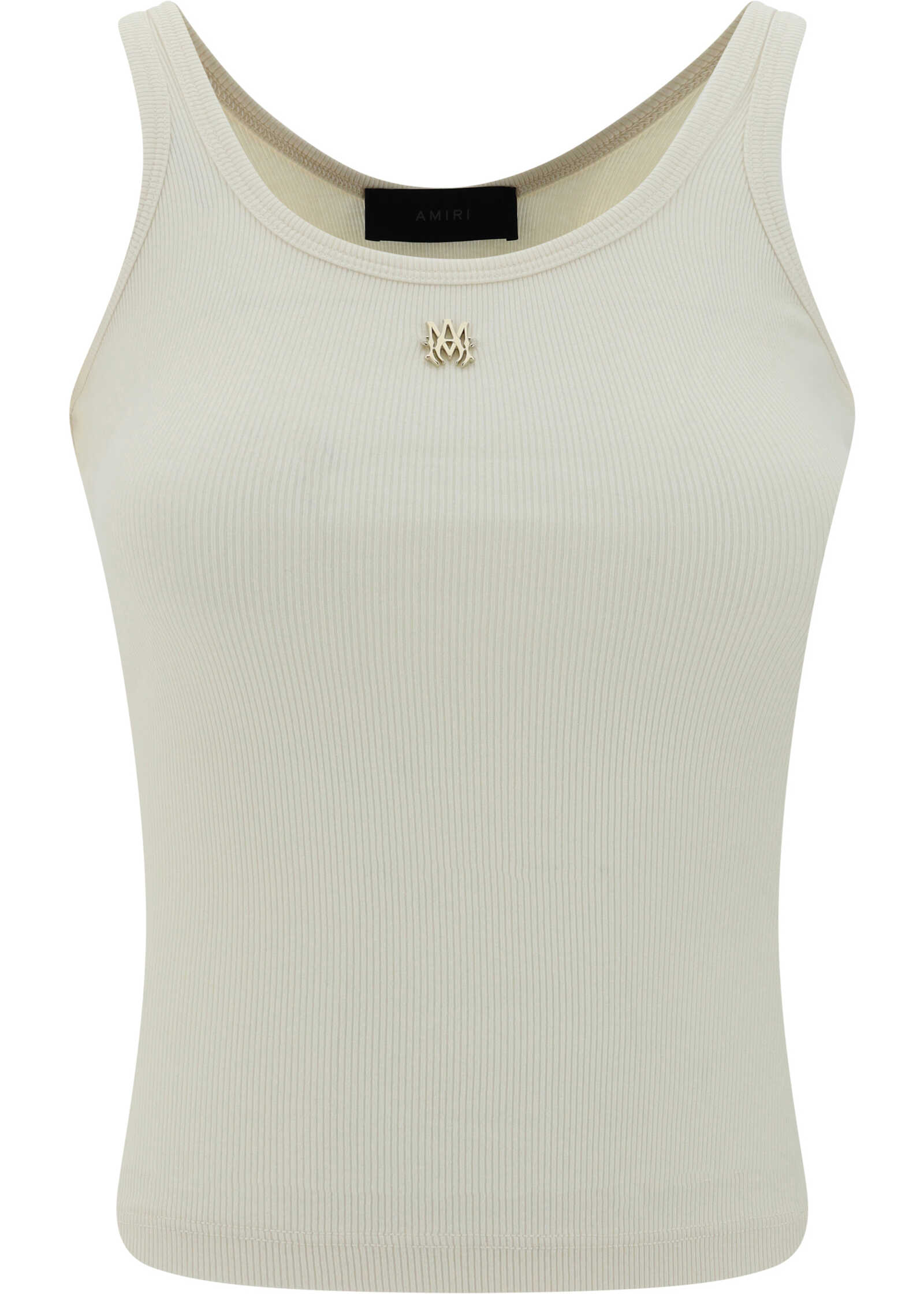 Cotton Top by Amiri, sleeveless design, thin shoulder straps, iconic brand logo metal plaque applied to front, all-over ribbed design, slim fit.