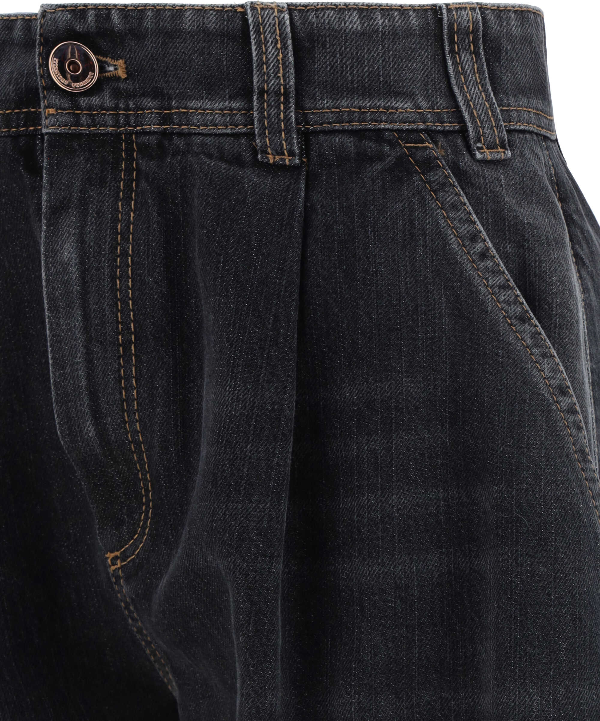 Cotton Jeans by Brunello Cucinelli, front zipper and button closure, belt loops waistband, baggy four-pocket style, high waist, loose fit.