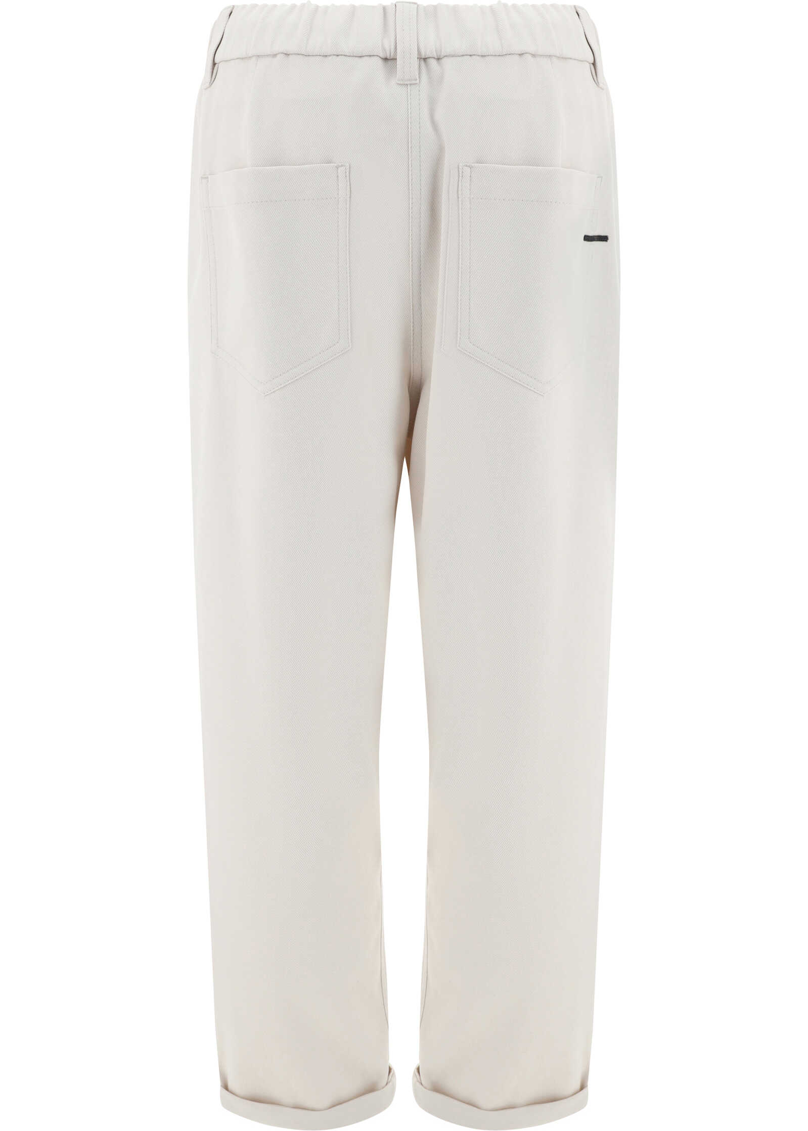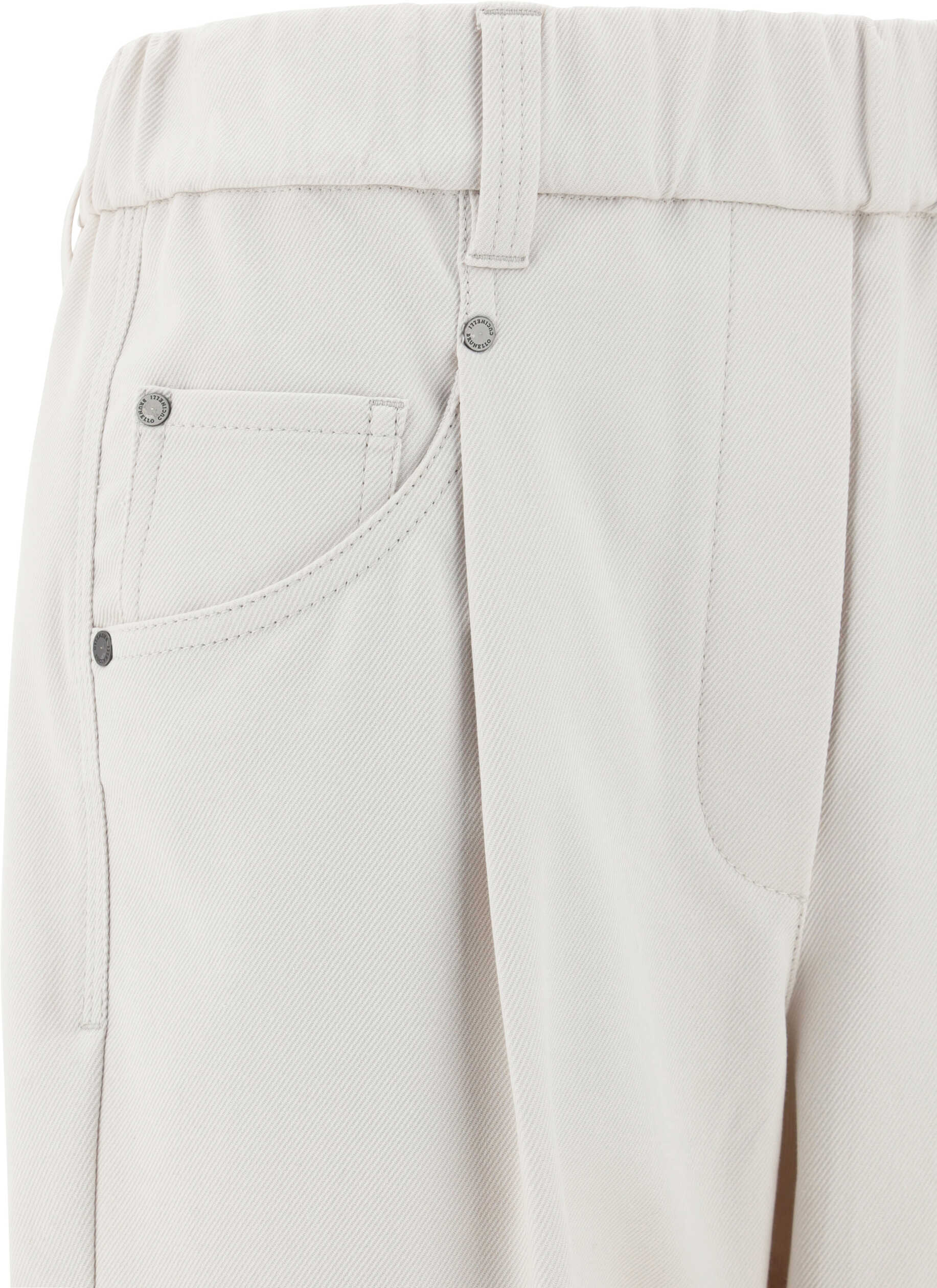 Cotton Pants by Brunello Cucinelli featuring five-pocket design, elasticated waistband, waistband loops, turned-up hem, two front darts, high waist, monochrome pattern, regular fit.