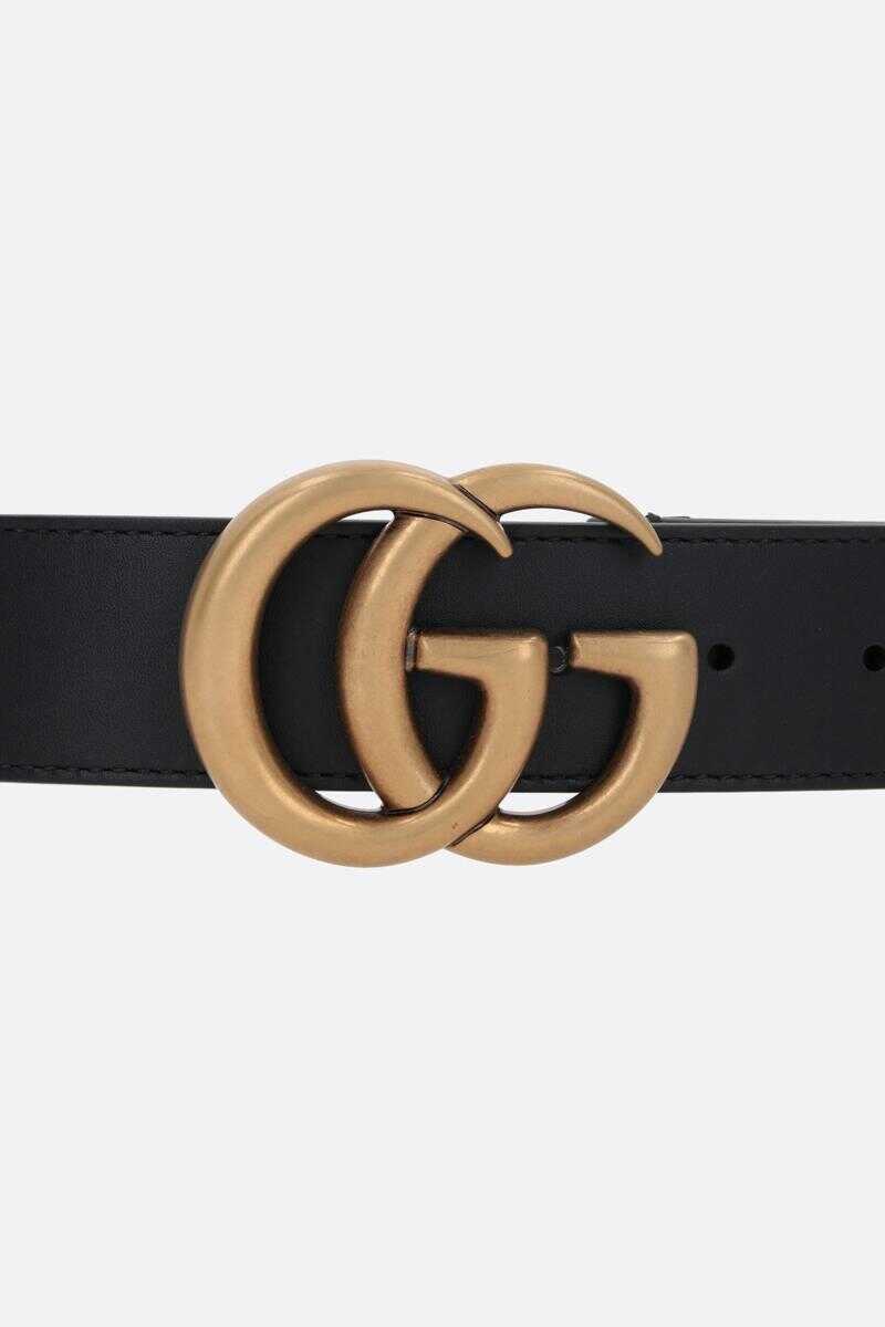 Gucci's belt crafted in black smooth leather. It features adjustable closure with the unmistakable antiqued gold-tone metal Double G buckle.