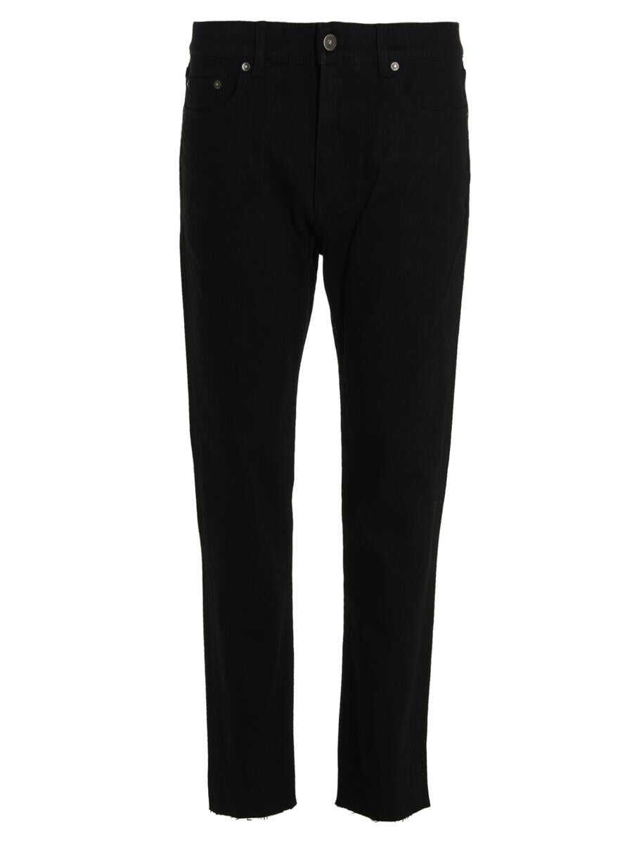 One Wash' five-pocket cotton jeans with zip and button closure and frayed leg bottoms