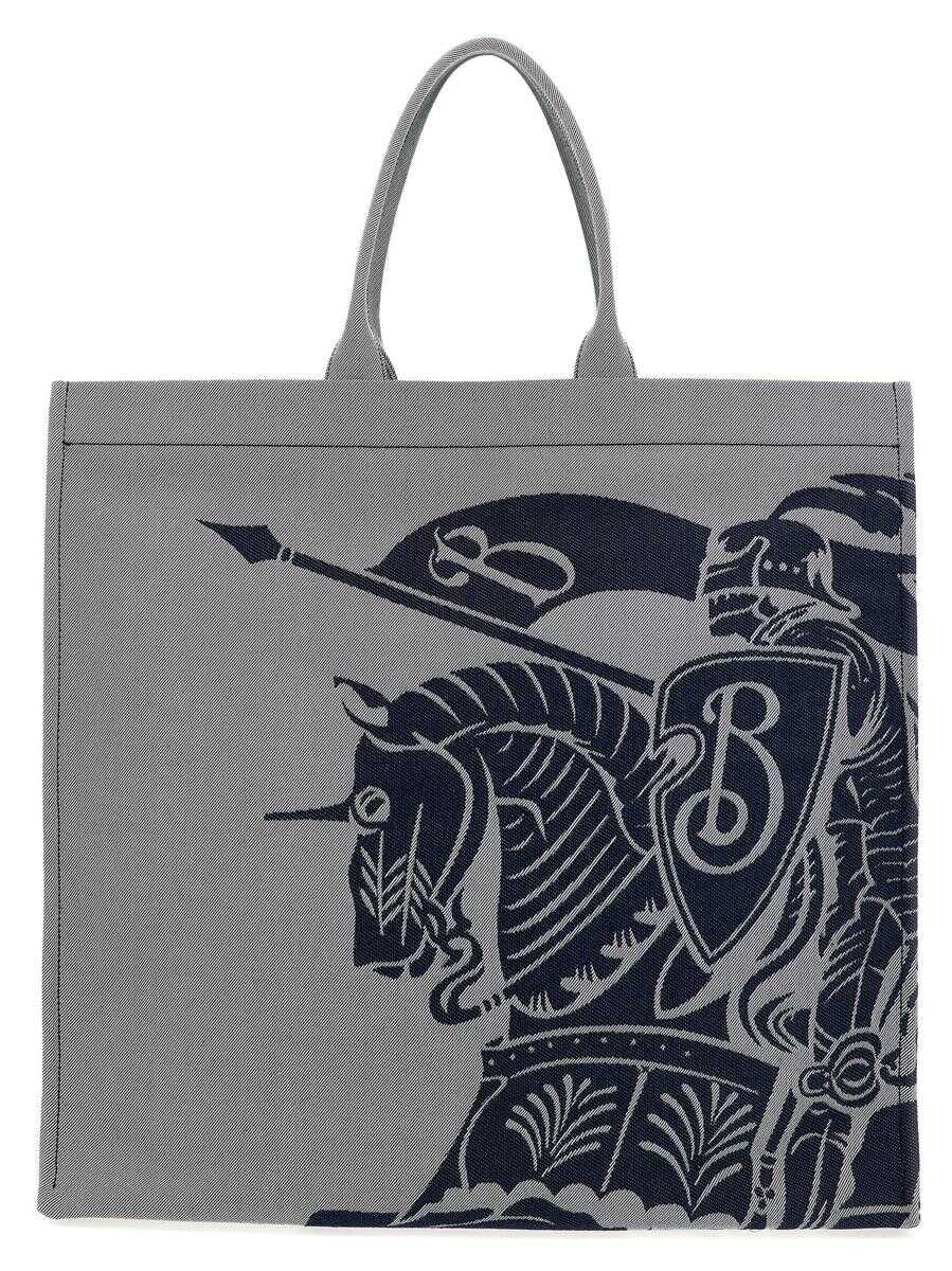 XL canvas shopping bag with 'EKD' logo print, double handle, removable inner clutch pouch with zip