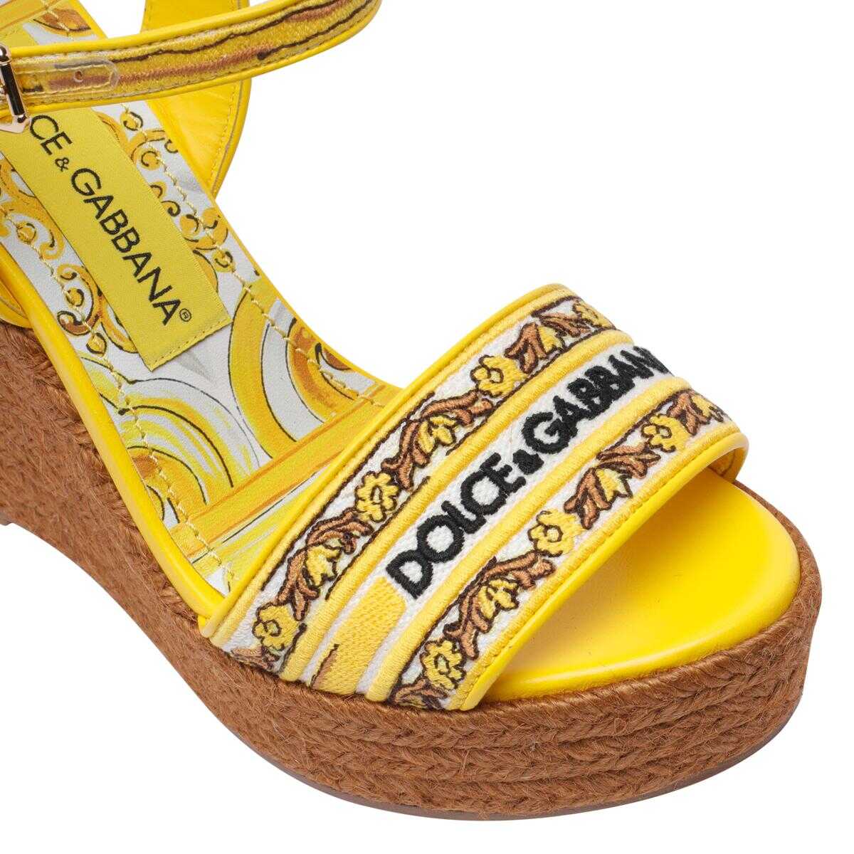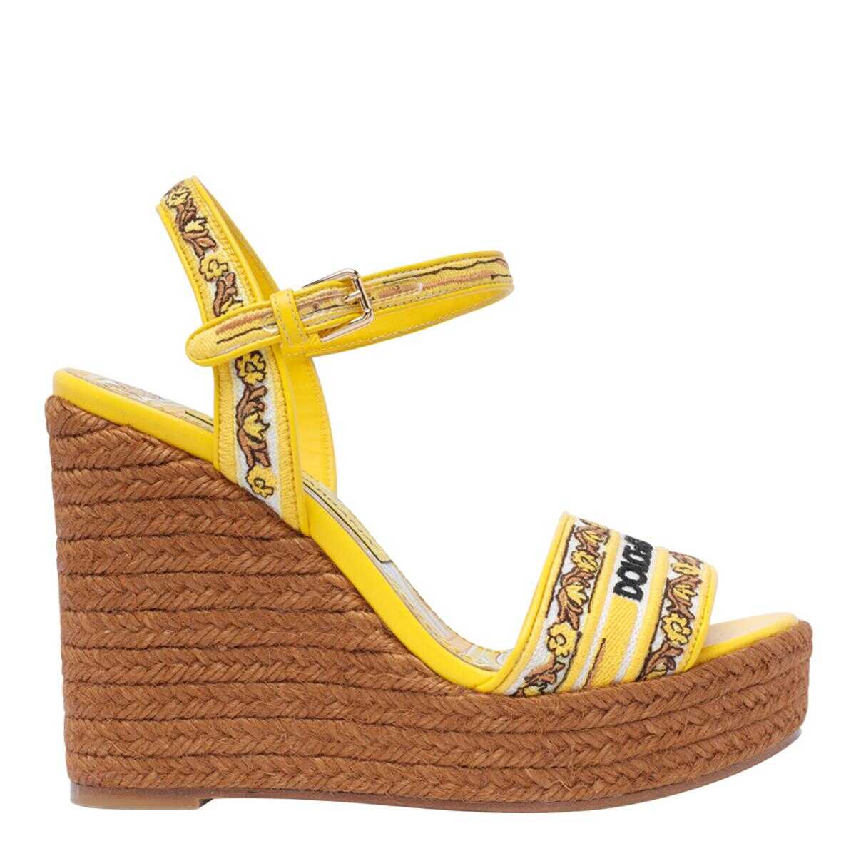 Wedge with thread-embroidered Maiolica pattern, ankle strap, leather insole, rope bottom, rubber sole