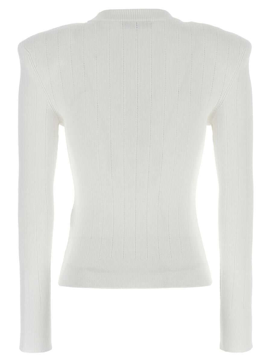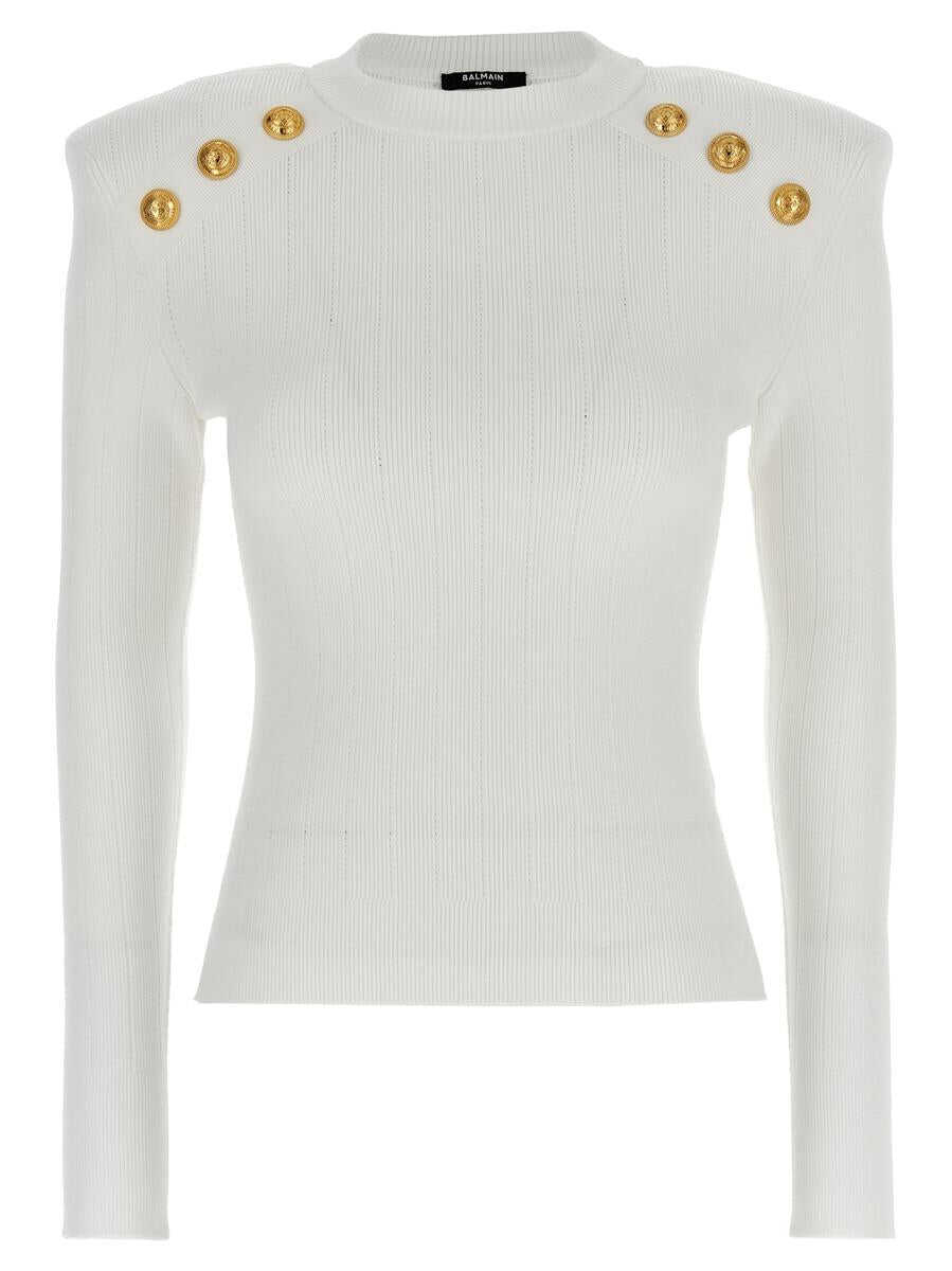 Ribbed viscose sweater with logo buttons, crew neck, thin straps, long sleeves