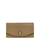 'Embleme' grained leather clutch with snap button closure, gold metal logo on the front, removable chain shoulder strap