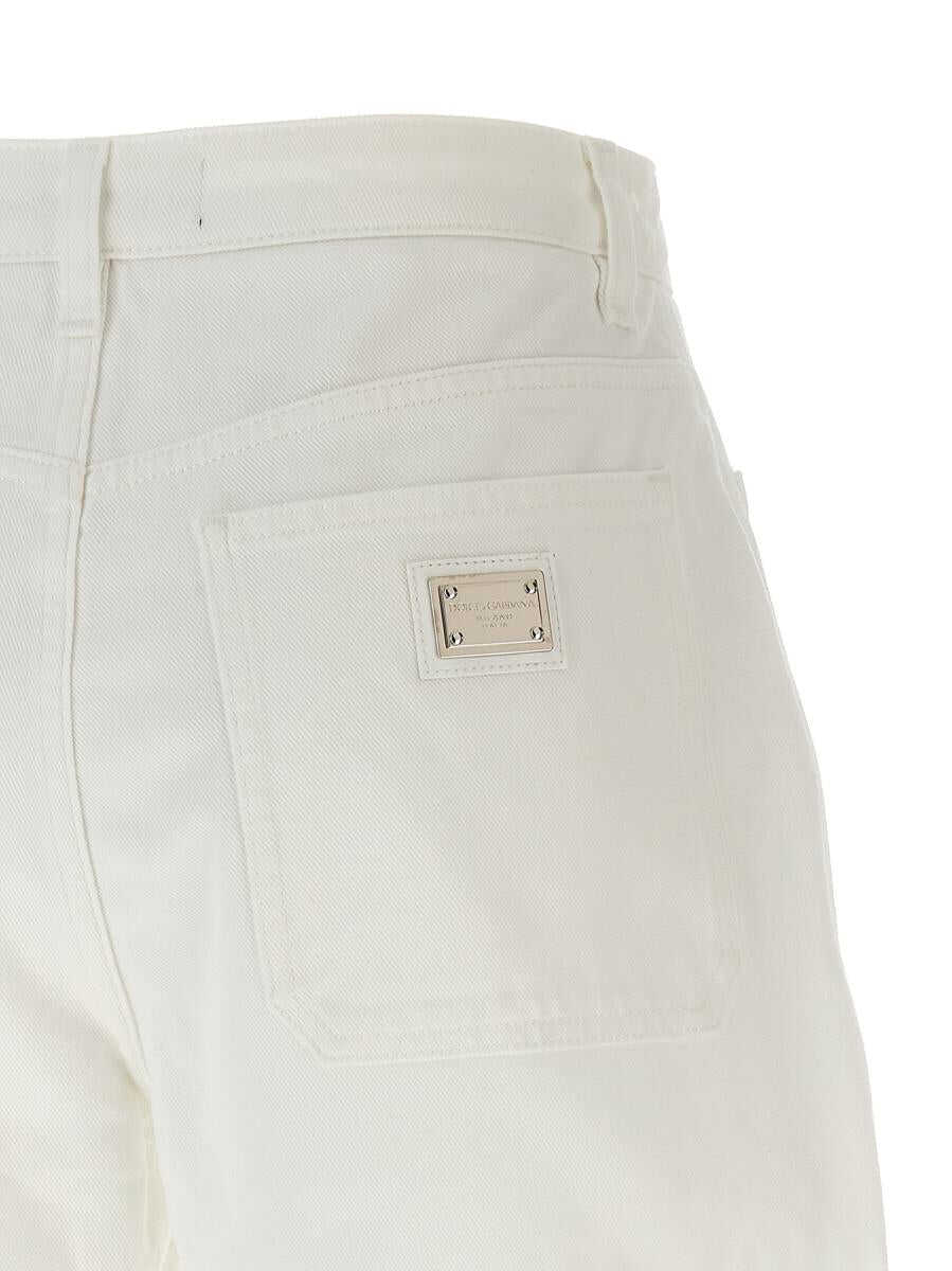 Cotton denim shorts with zip and button closure, pockets, back logo plaque