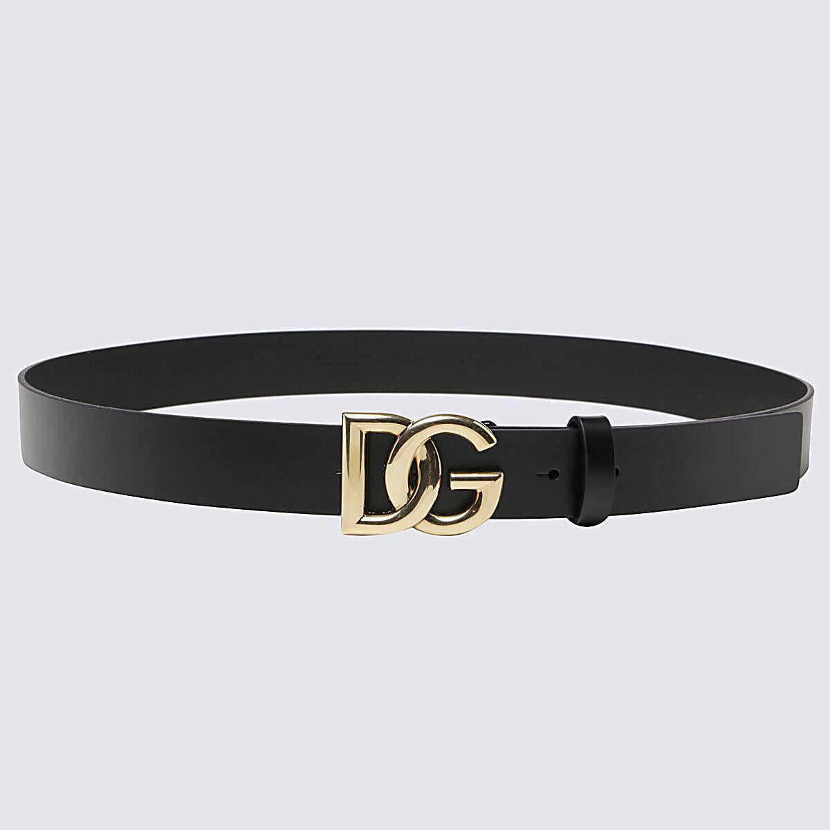 Black leather DG Logo belt from Dolce & Gabbana featuring DG logo buckle fastening, square ends and adjustable fit.
