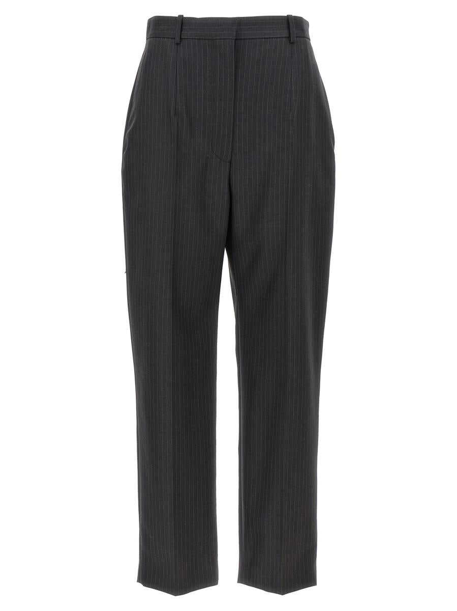 Pinstripe wool pants, hook and button zip closure, pockets, ironed pleat