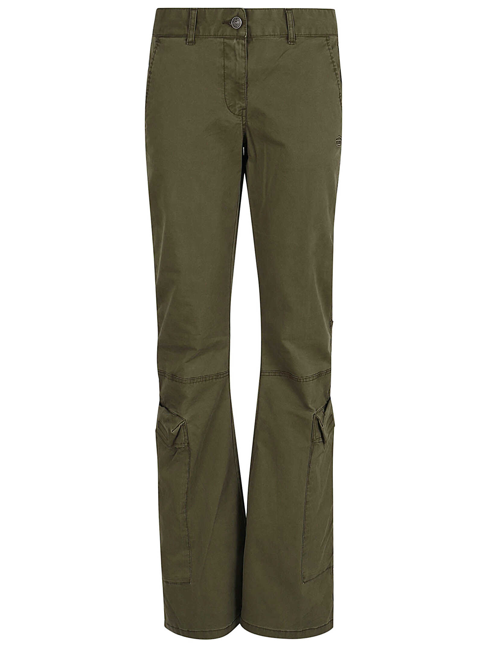 Elevate your style with these chic green cotton trousers from Diesel. Featuring a regular fit, front closure with button and zip, and signature oval D logo detail. Perfect for any occasion, these trousers are a must-have for every fashion-forward woman. Get yours now and experience the ultimate comfort and style.