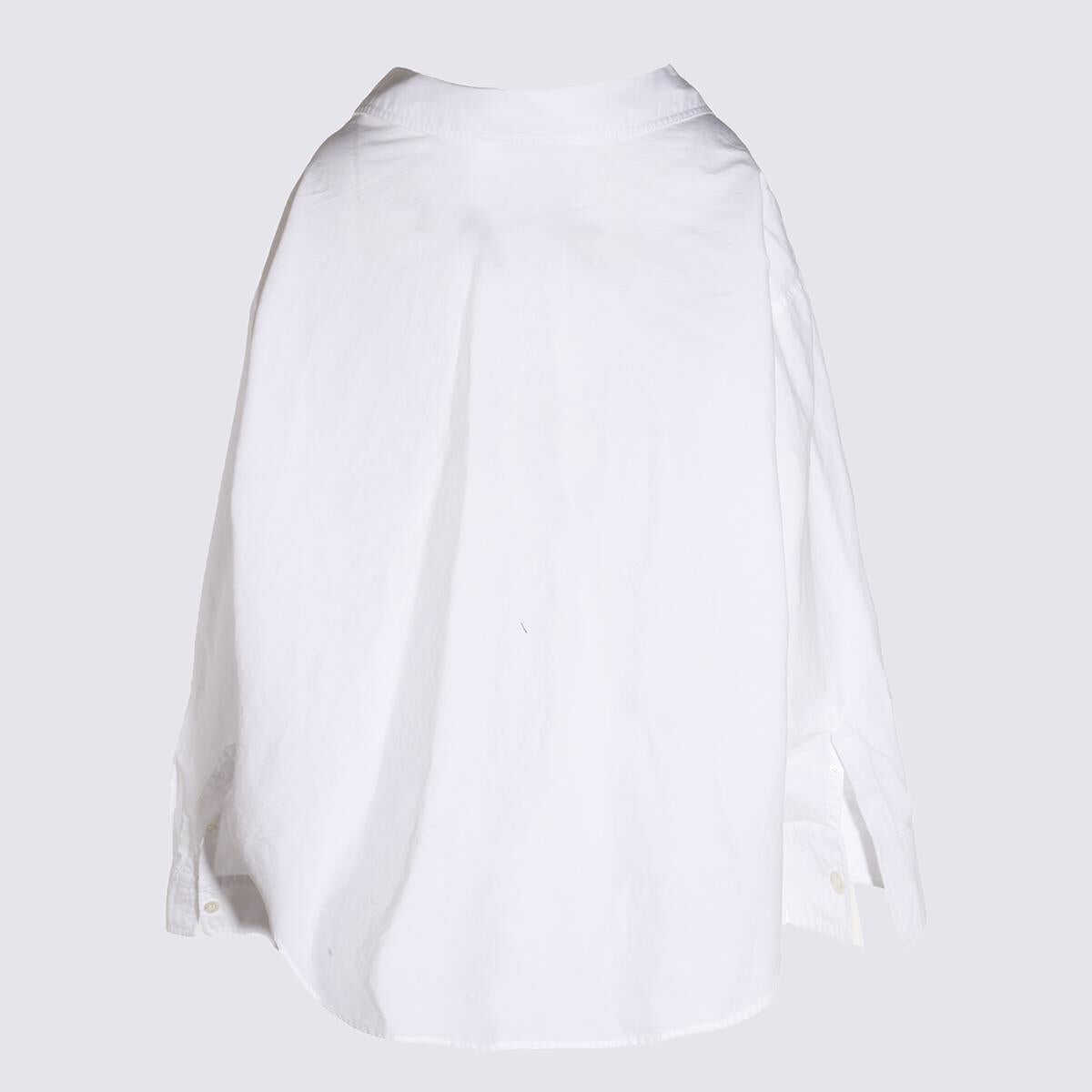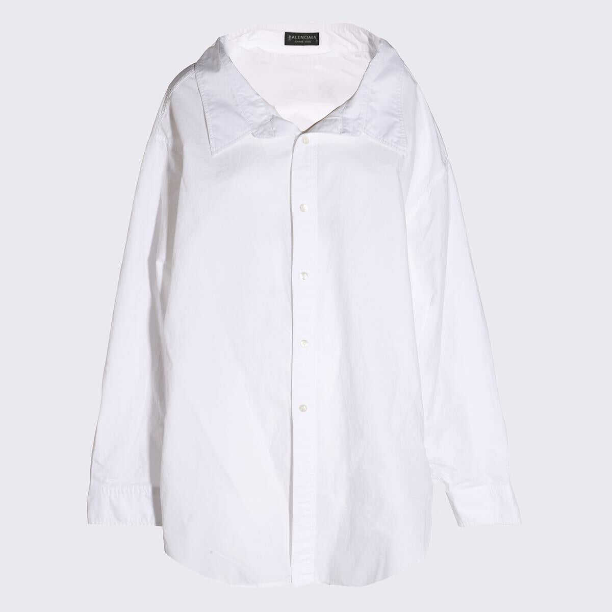 Off-the-shoulder style cotton poplin shirt with button closure and long cuffed sleeves