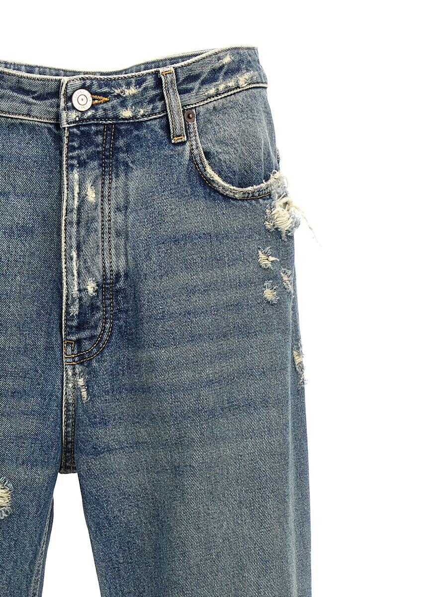 'Ripped' cotton denim jeans with used and destroyed effect details, button closure, five pockets, back logo label
