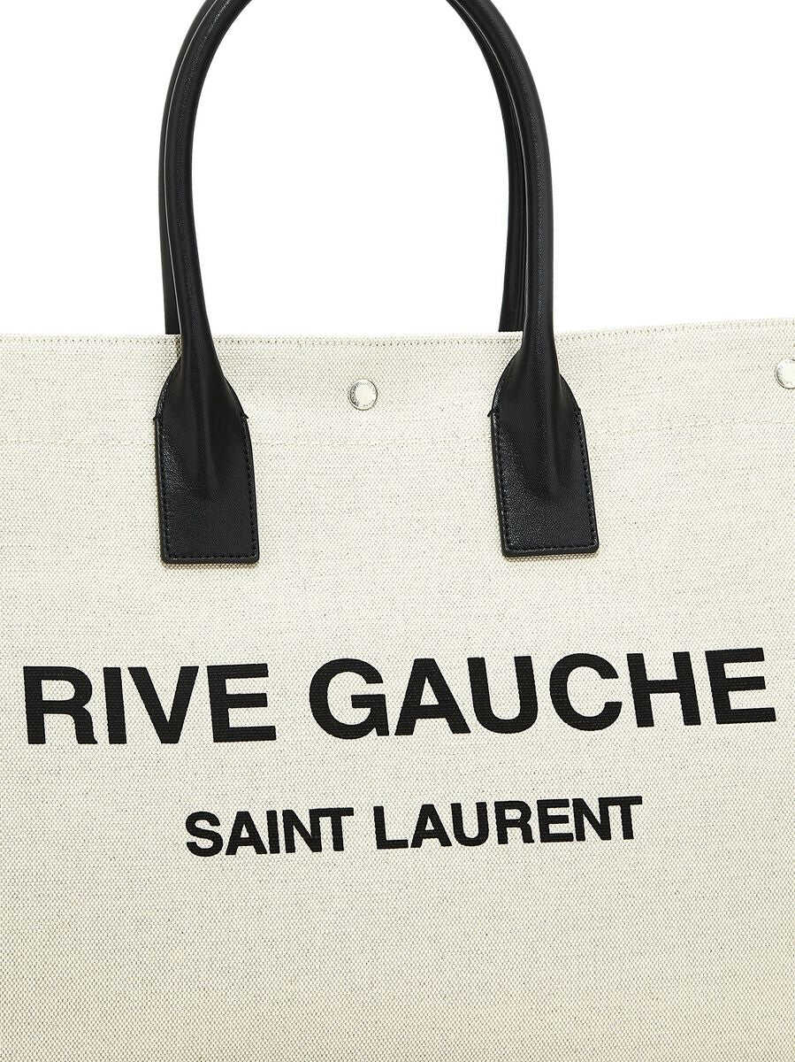 Shopping 'Rive Gauche' grande in tela e pelle, doppio manico, chiusura con bottone automatico, logo frontale