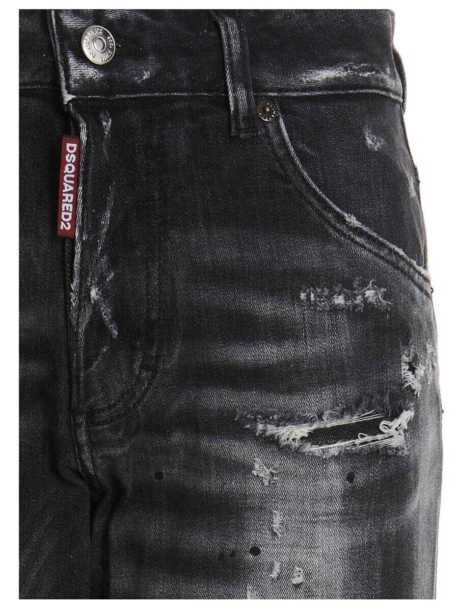 'Dan' washed-effect, five.pocket black cotton denim jeans with a button closure, a long crotch, a short bottom, rips and a skinny fit