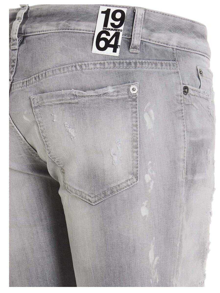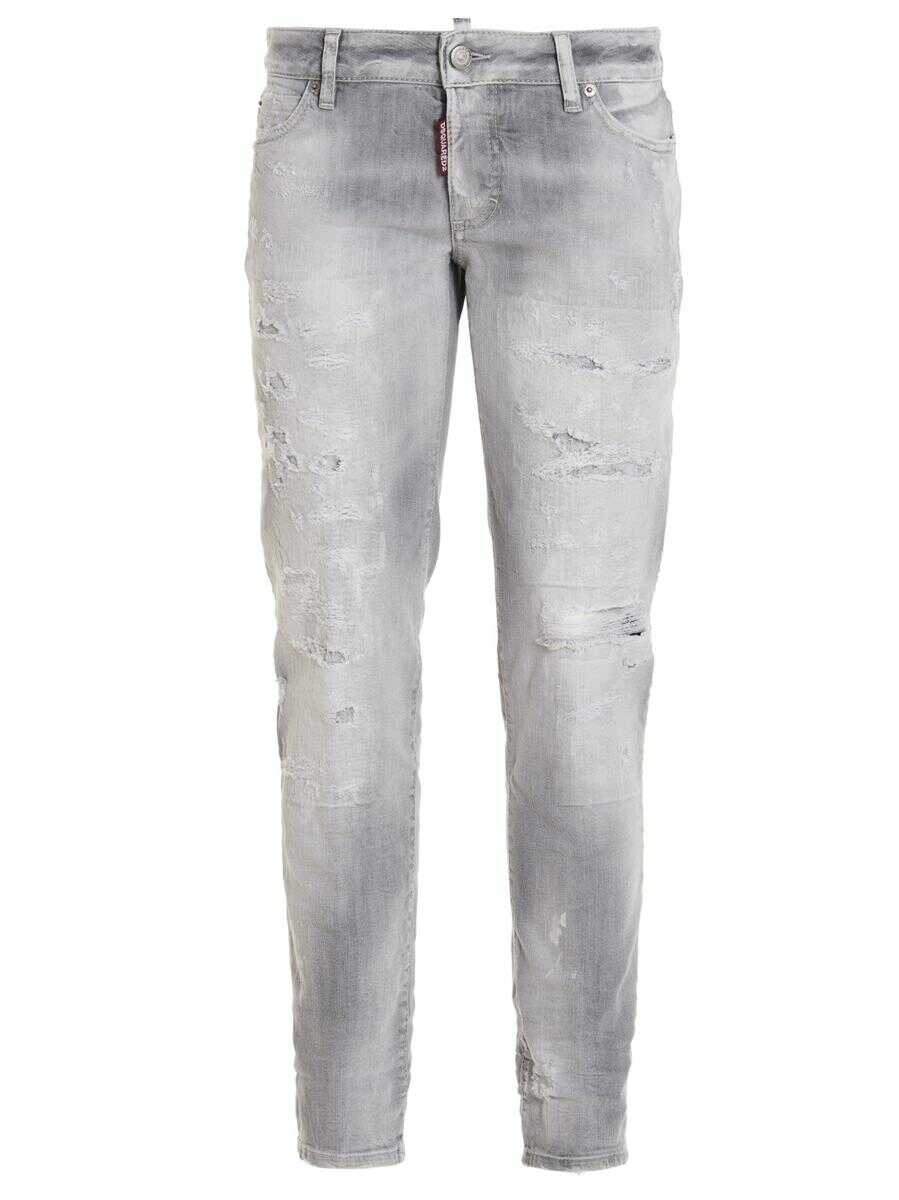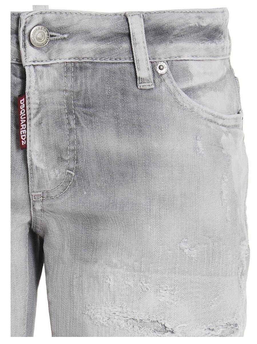 'Jennifer' five-pocket cotton denim jeans with a button closure, rips, a short crotch, a tight bottom, a washed effect and a cropped fit