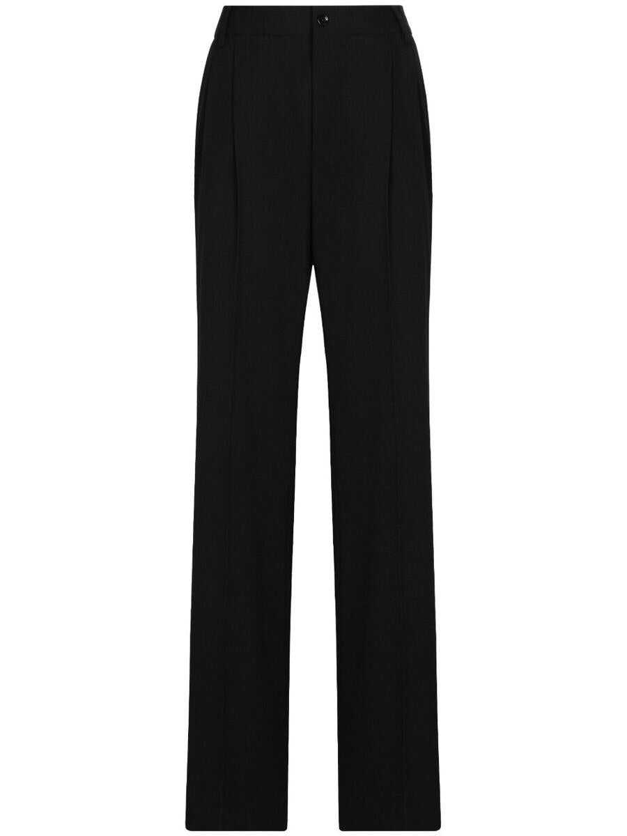 box-pleat high-waisted trousers from DOLCE & GABBANA featuring black, virgin wool blend, straight leg, wide leg, high-waisted, box-pleat detail, concealed fly and button fastening, belt loops and two rear button-fastening jetted pockets.