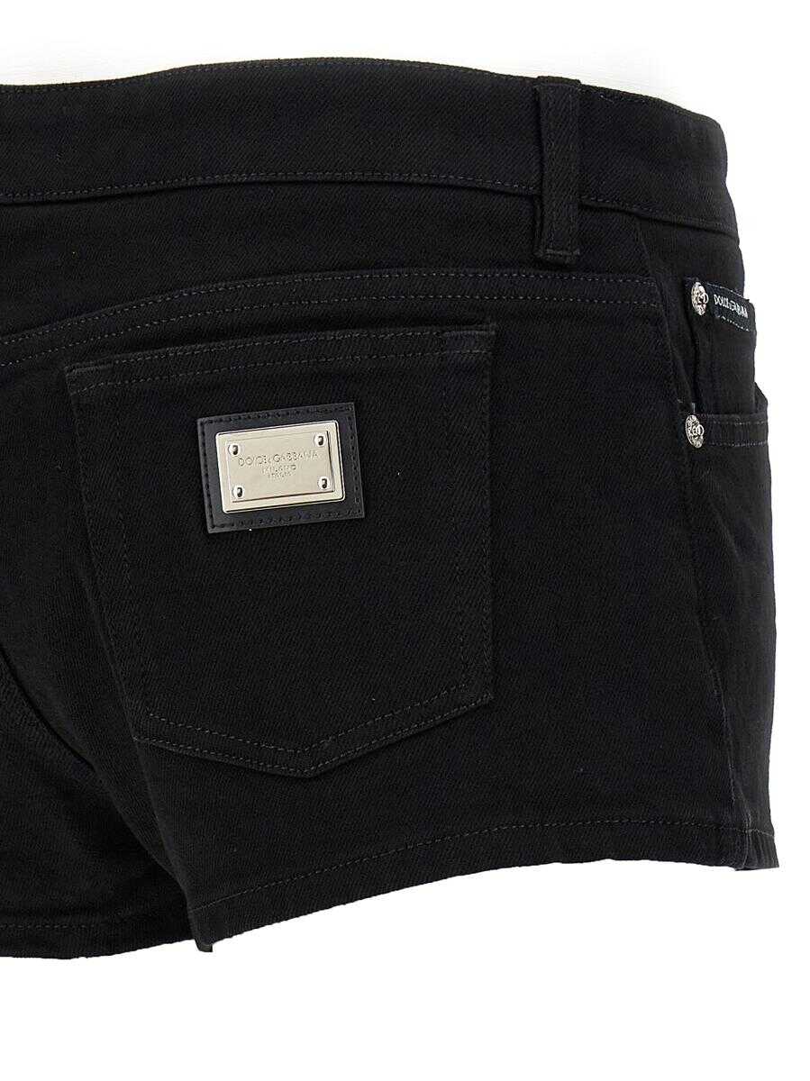 5-pocket cotton denim shorts with logo plaque detail on the back