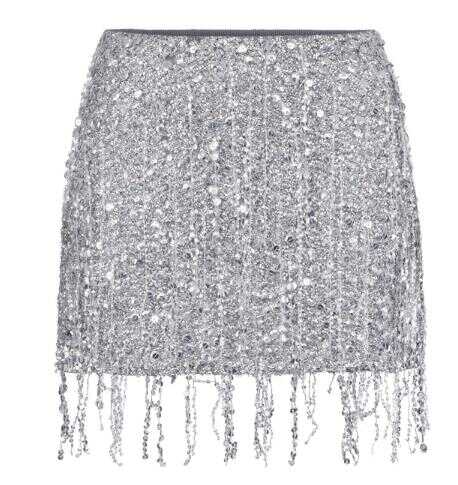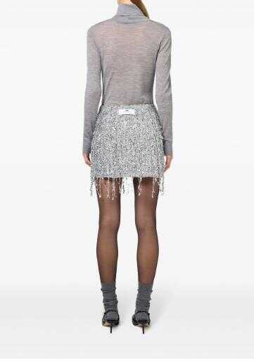 silver-tone concealed side zip fastening embroidered design sequin detailing low-rise straight hem thigh-length